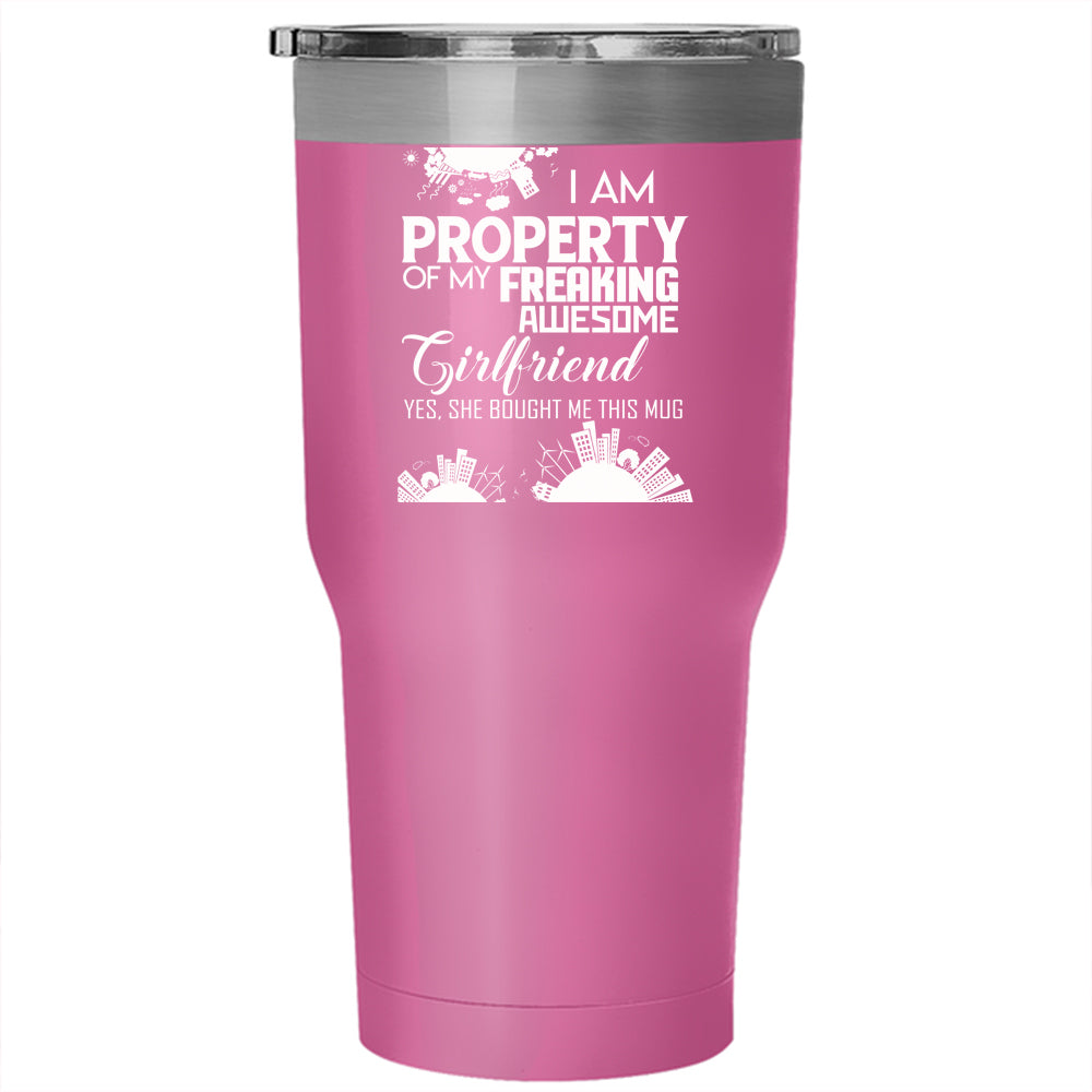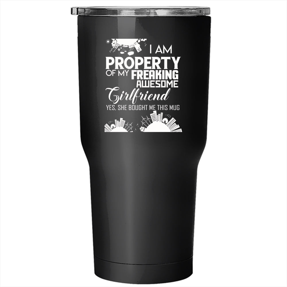 I Am Property Of My Awesome Girlfriend Tumbler 30 oz Stainless Steel, Cool Landscaper Travel Mug