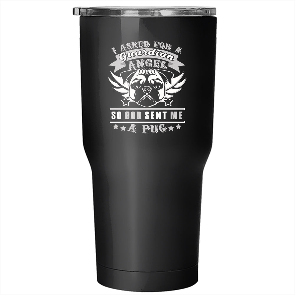 I Asked For A Guardian Angel Tumbler 30 oz Stainless Steel, God Sent Me A Pug Travel Mug