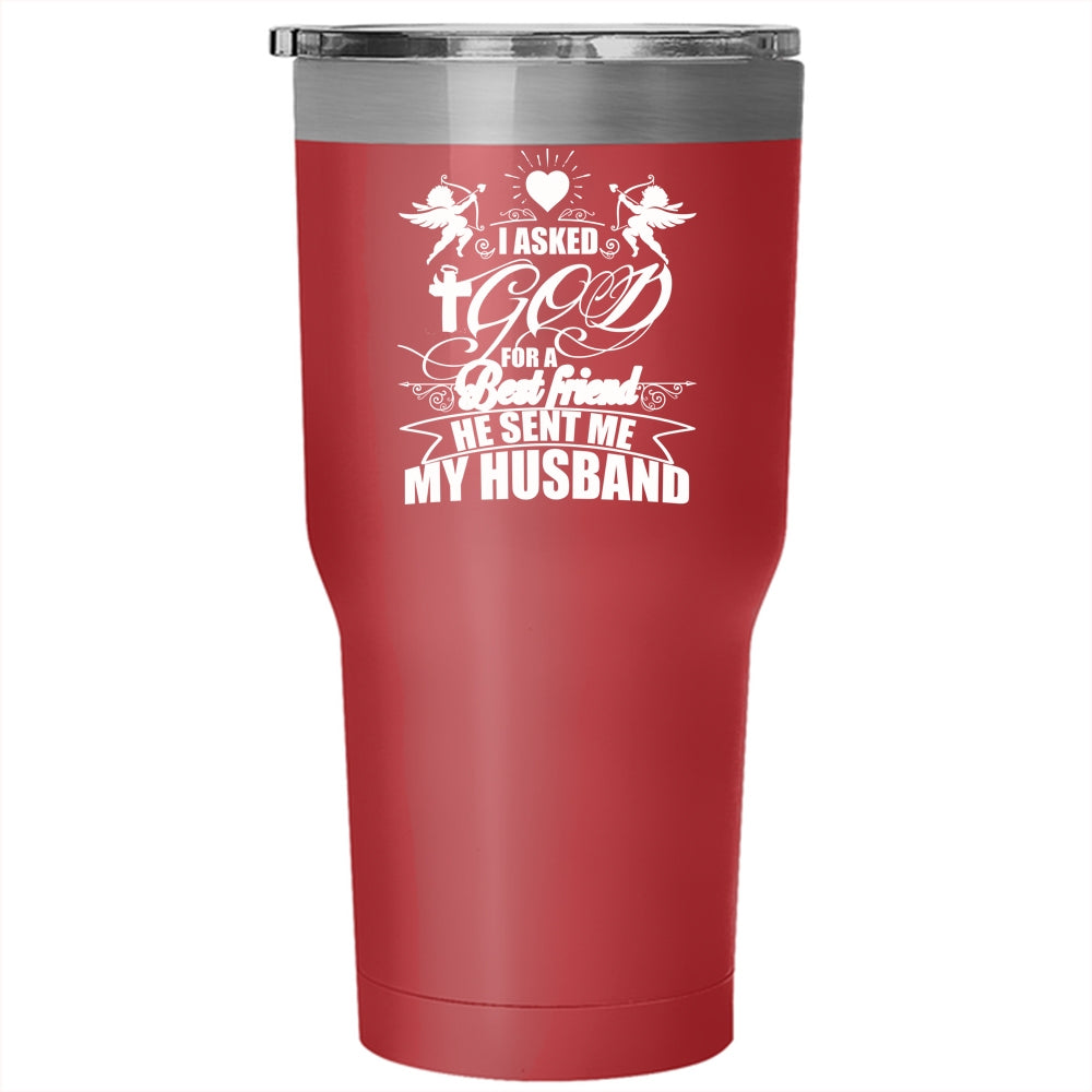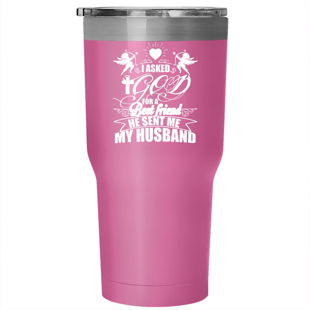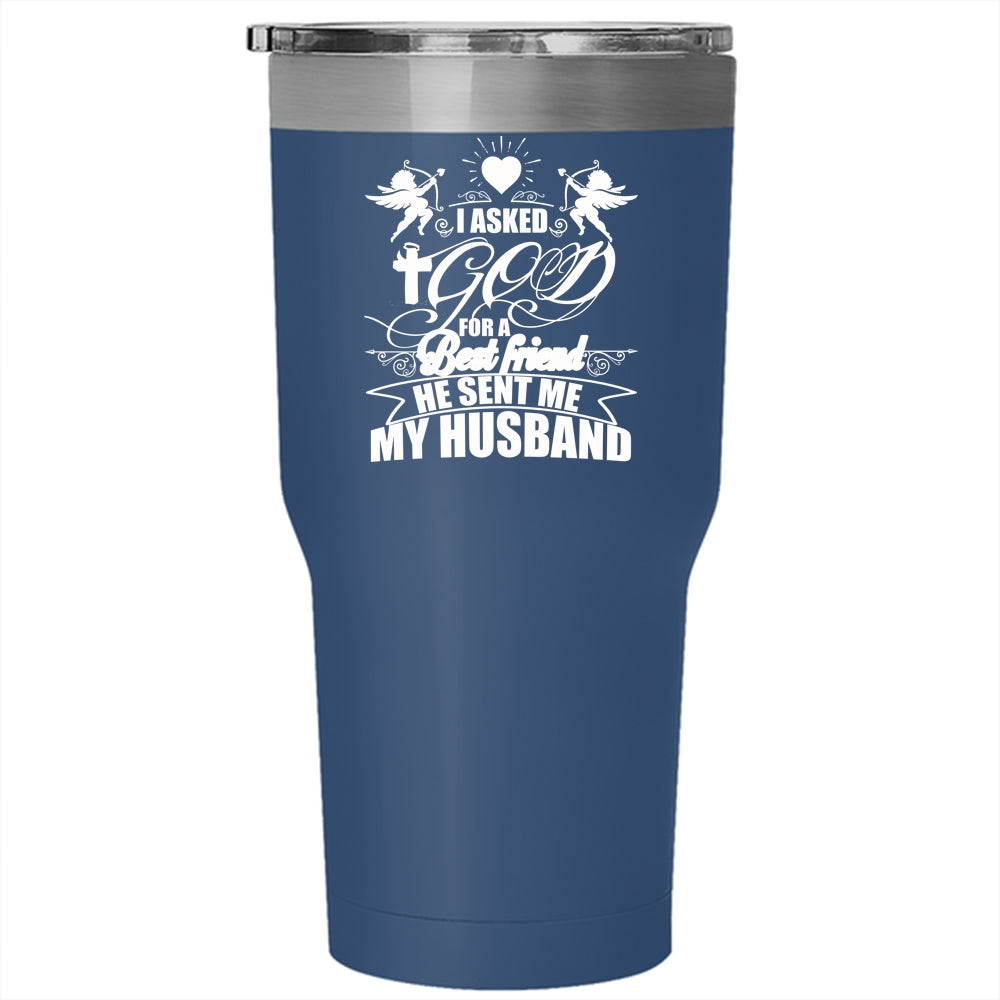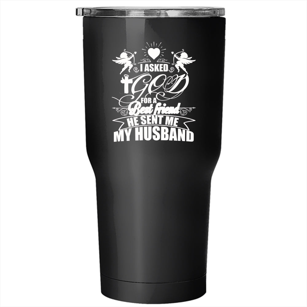 I Asked God For A Best Friend Tumbler 30 oz Stainless Steel, He Sent Me My Husband Travel Mug