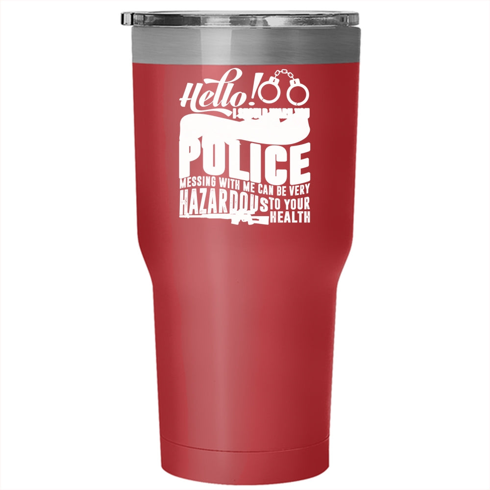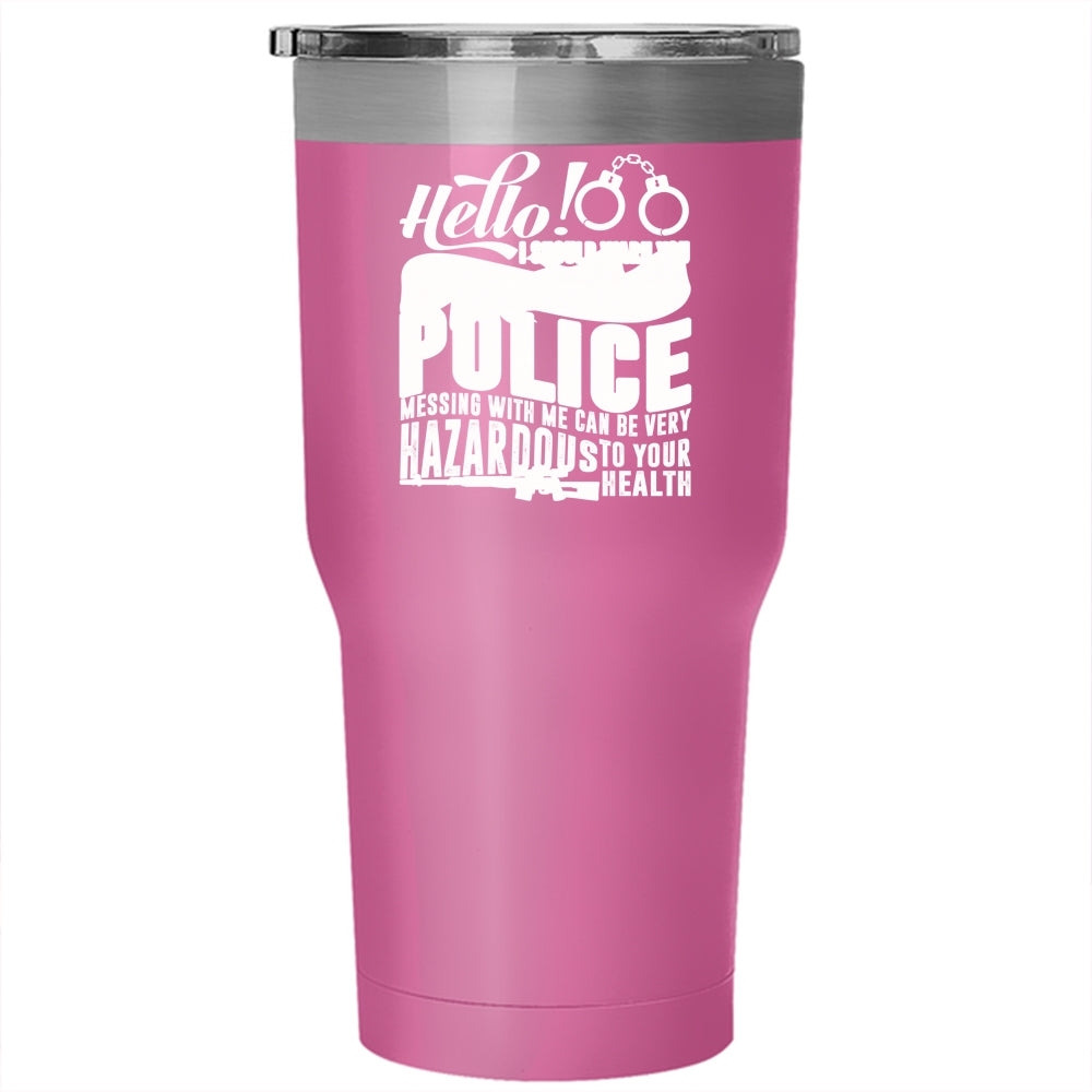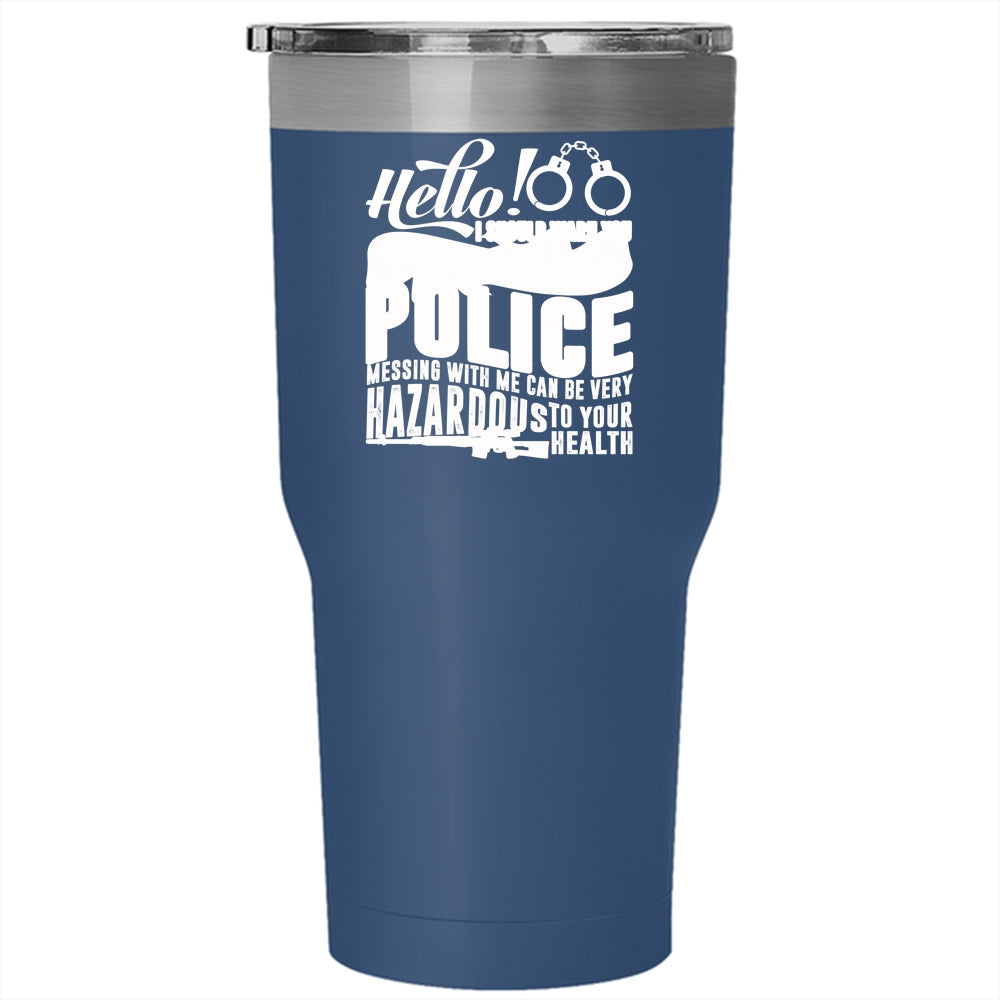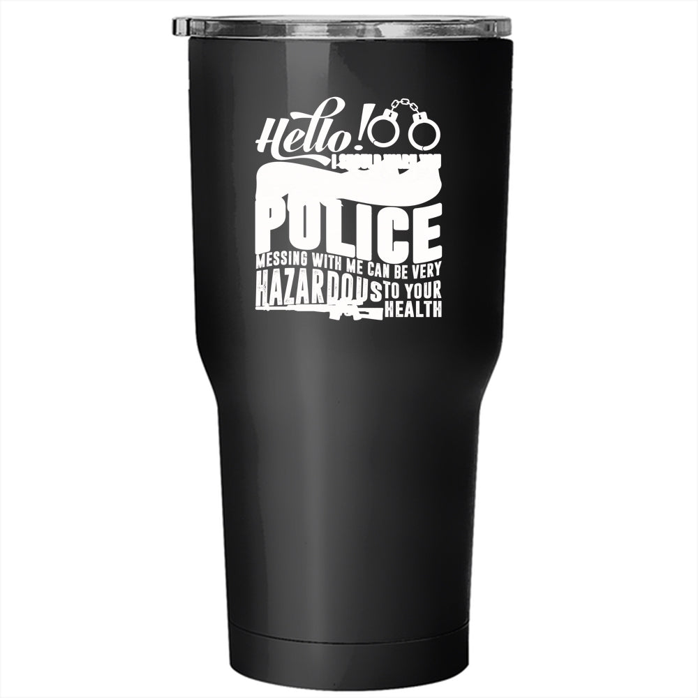 I Belong To A Police Tumbler 30 oz Stainless Steel, Mesing With Me Can Be Very Hazardous Travel Mug