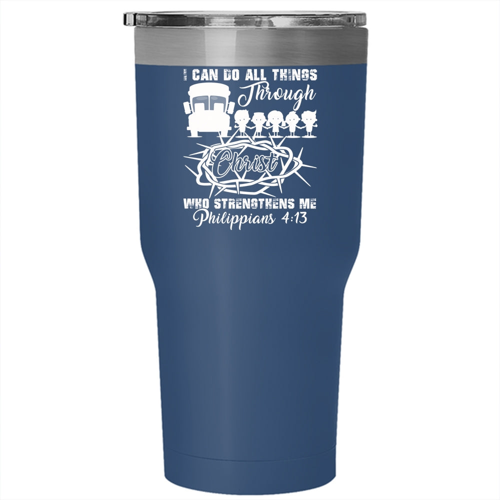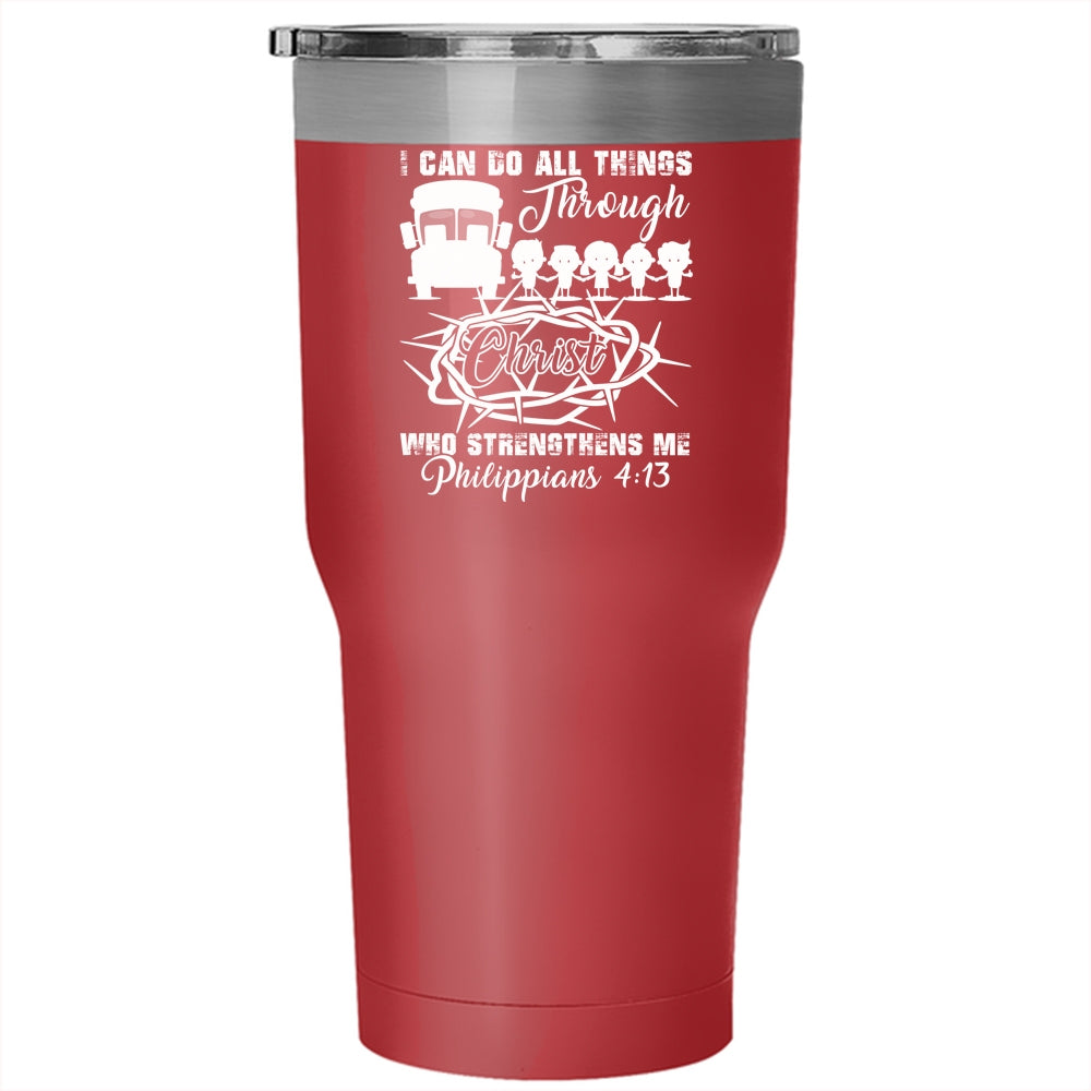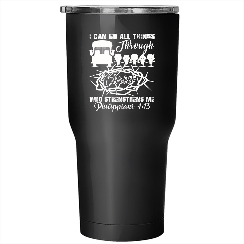 I Can Do All Things Tumbler 30 oz Stainless Steel, Cool School Bus Driver Travel Mug