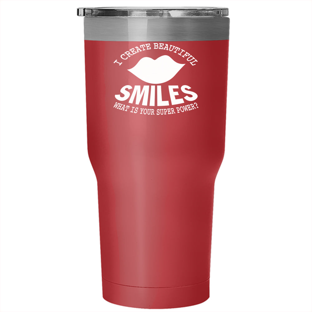 I Create Beautiful Smiles Tumbler 30 oz Stainless Steel, Funny Dentist Travel Mug