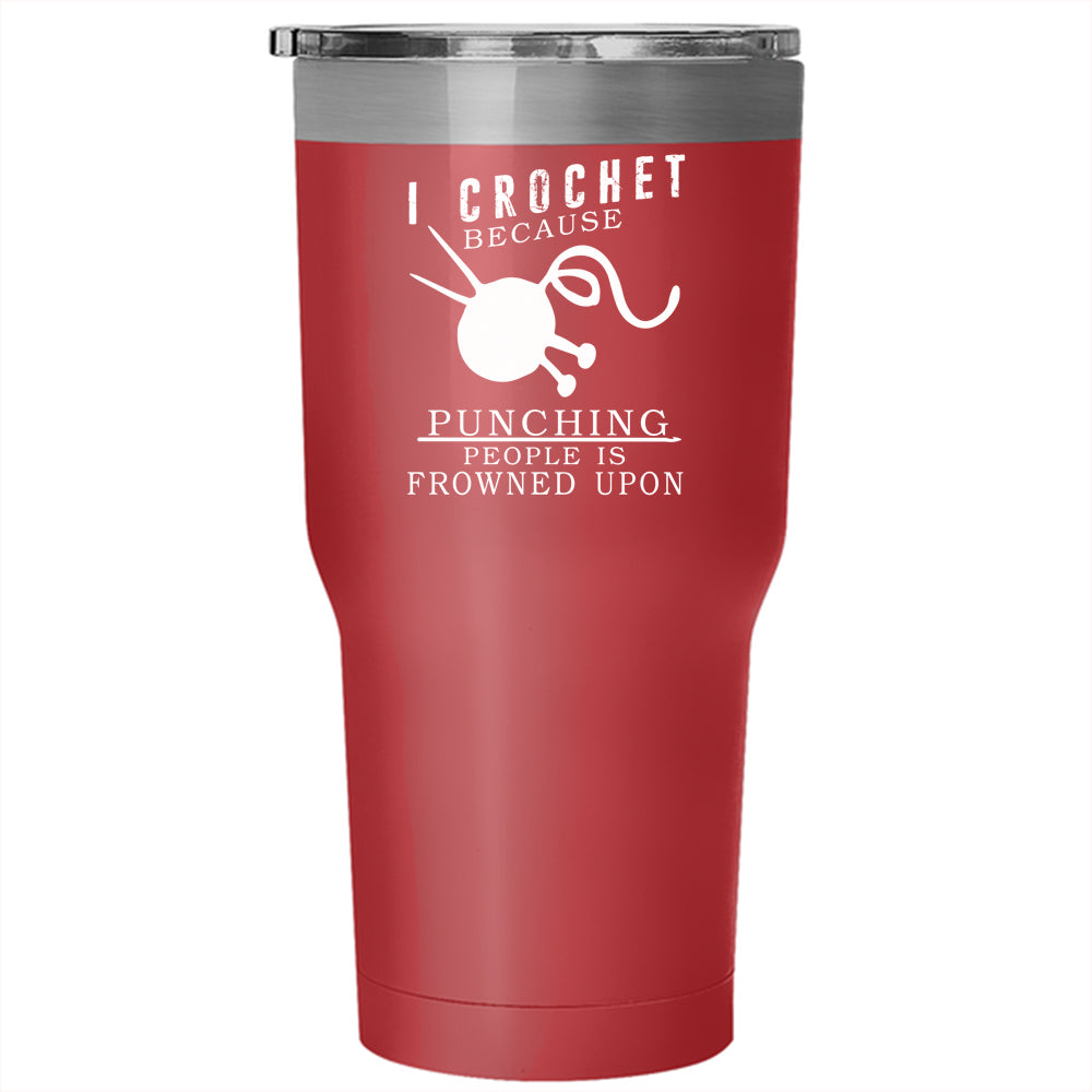 I Crochet Tumbler 30 oz Stainless Steel, Punching People Is Frowned Upon Travel Mug