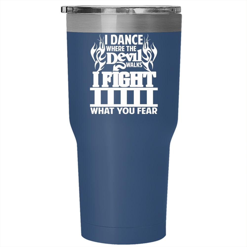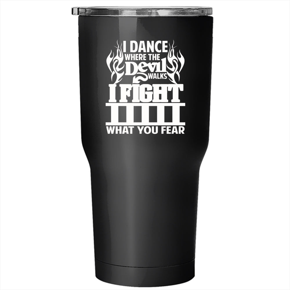 I Dance Where The Devil Walks Tumbler 30 oz Stainless Steel, Awesome Firefighter Travel Mug