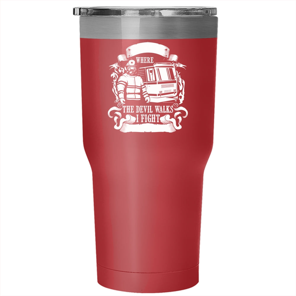 I Dance Where The Devil Walks Tumbler 30 oz Stainless Steel, Funny Firefighter Travel Mug