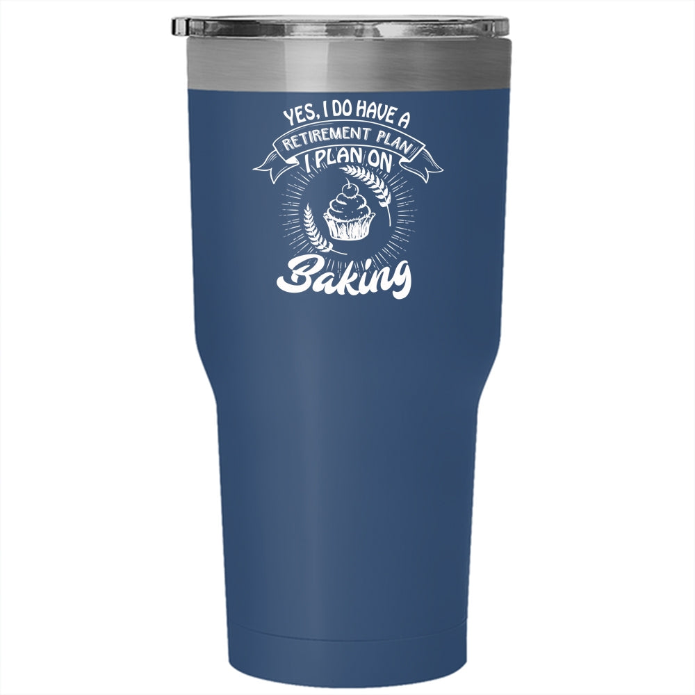 I Do Have A Retirement Plan Tumbler 30 oz Stainless Steel, I Plan On Baking Travel Mug