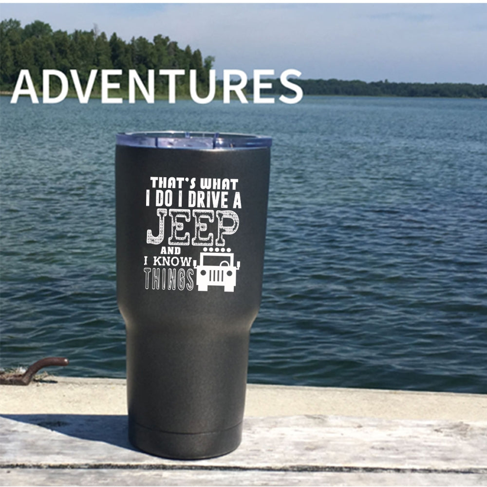 I Do I Drive A Jeep Tumbler 30 oz Stainless Steel, I Know Things Travel Mug