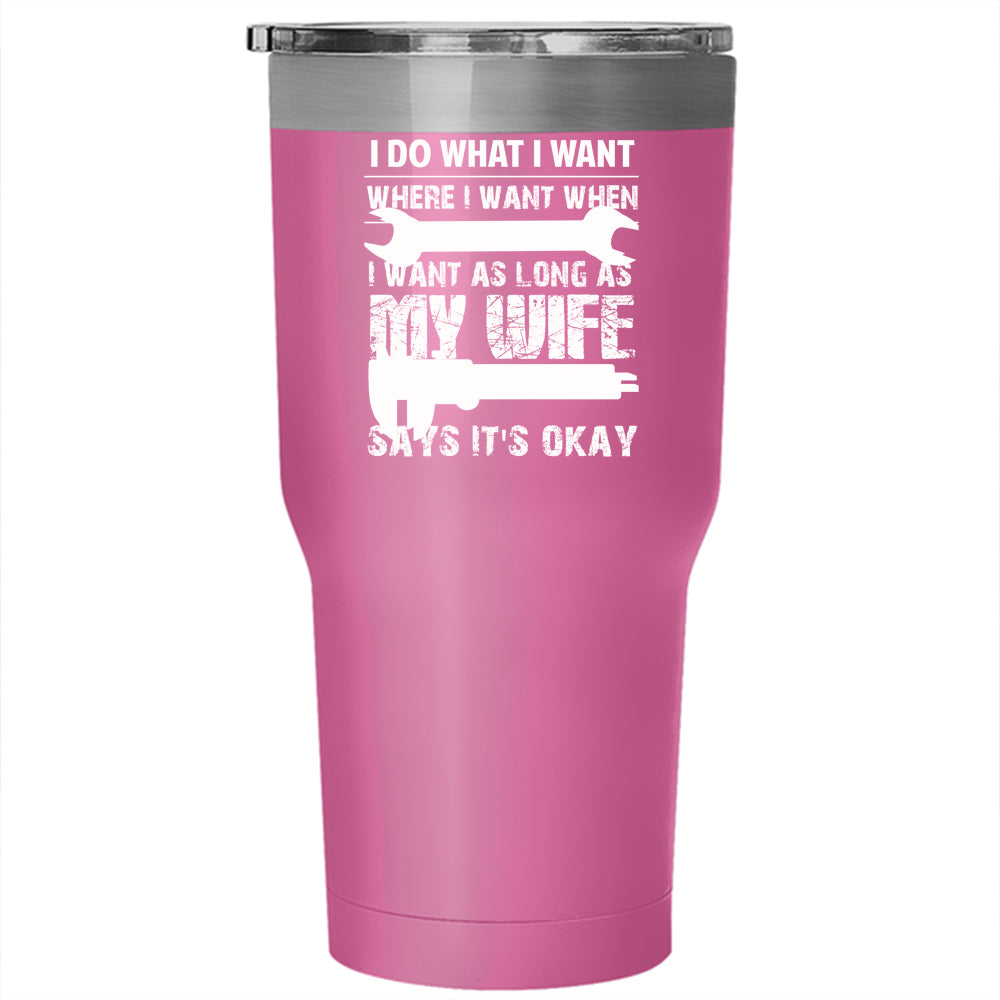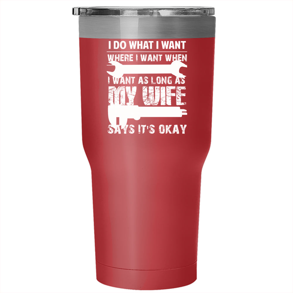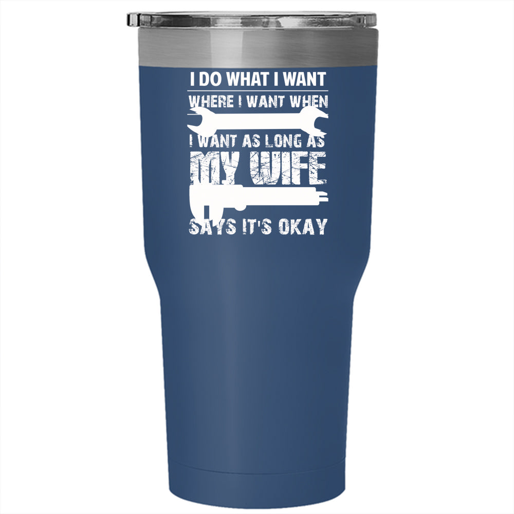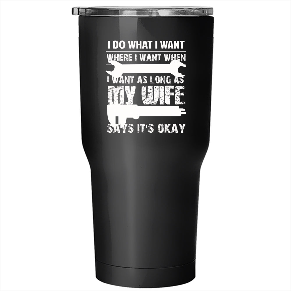 I Do What I Want Tumbler 30 oz Stainless Steel, My Wife Says It's Okay Travel Mug