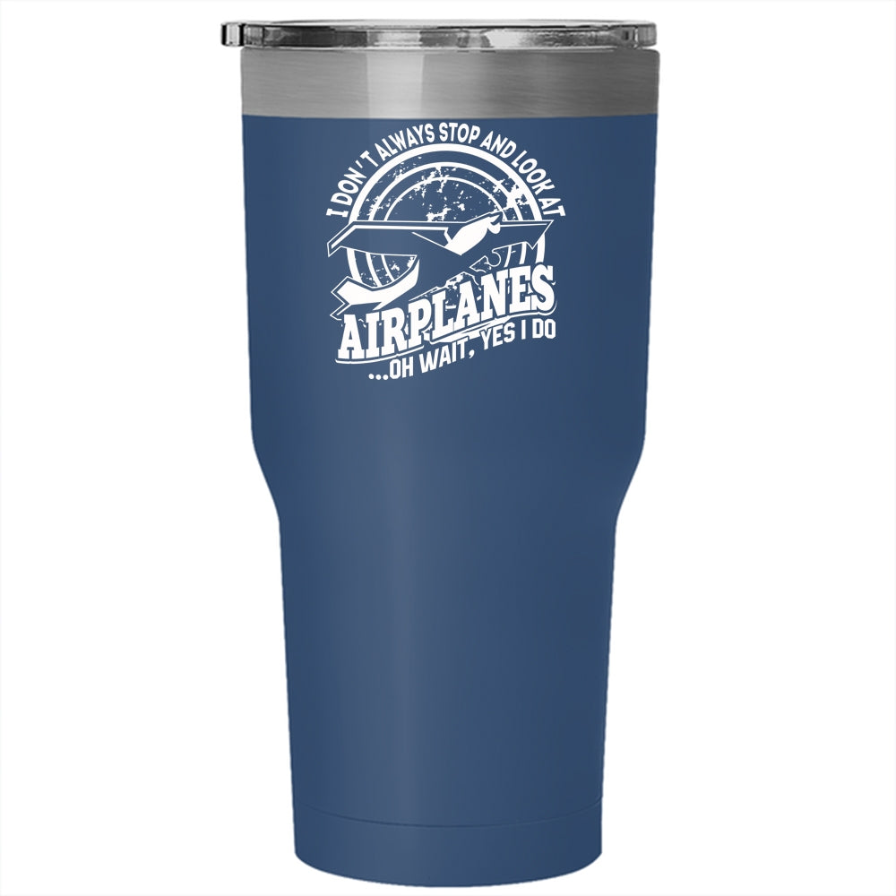 I Don't Always Stop And Look At Airplanes Tumbler 30 oz Stainless Steel, Cool Airplane Travel Mug