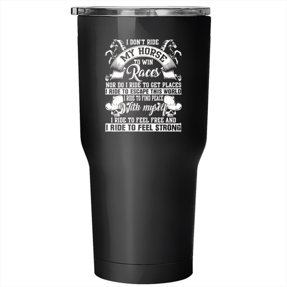 I Don't Ride My Horse To Win Tumbler 30 oz Stainless Steel, I Ride To Feel Strong Travel Mug