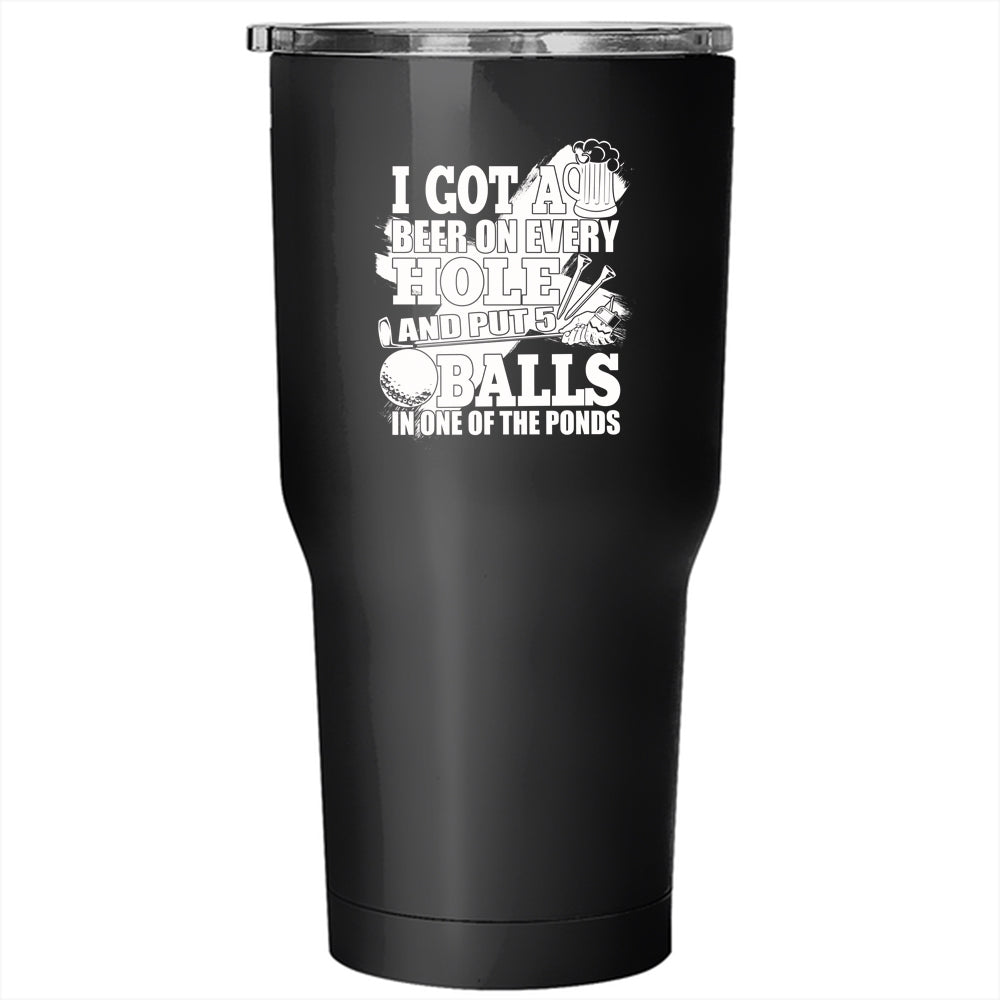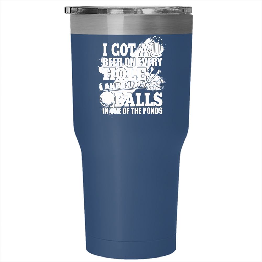 I Got A Beer On Every Hole Tumbler 30 oz Stainless Steel, Funny Golf Travel Mug