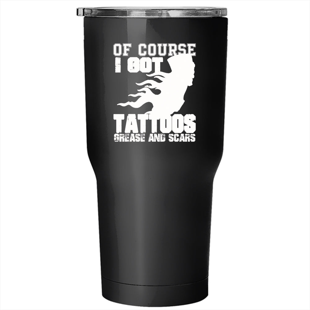 I Got Tattoos Grease And Scars Tumbler 30 oz Stainless Steel, Funny Tattooed Mechanics Travel Mug