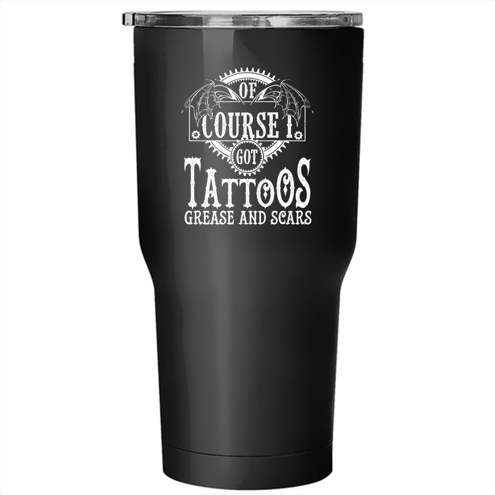 I Got Tattoos Grease And Scars Tumbler 30 oz Stainless Steel, Funny Tattoos Travel Mug