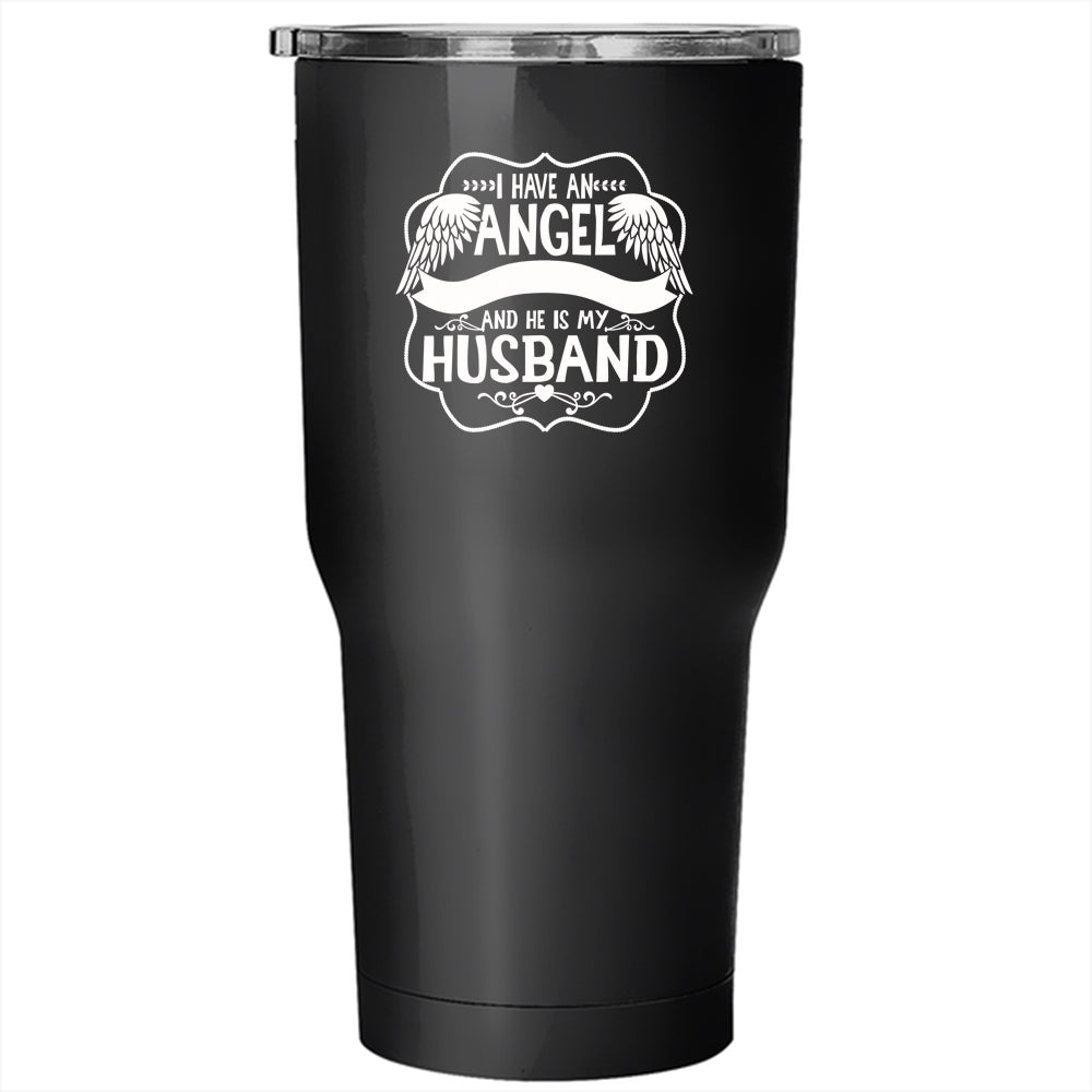I Have An Angel Waiting In Heaven Tumbler 30 oz Stainless Steel, He Is My Husband Travel Mug