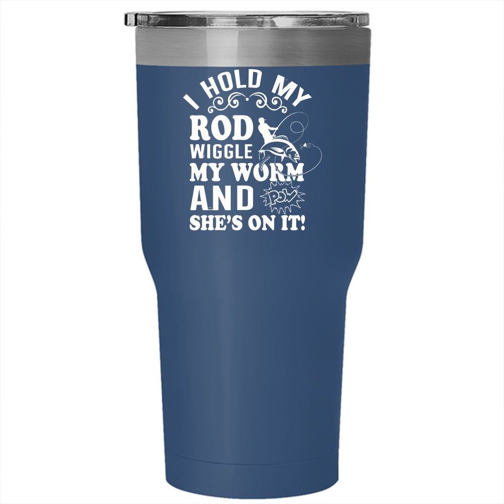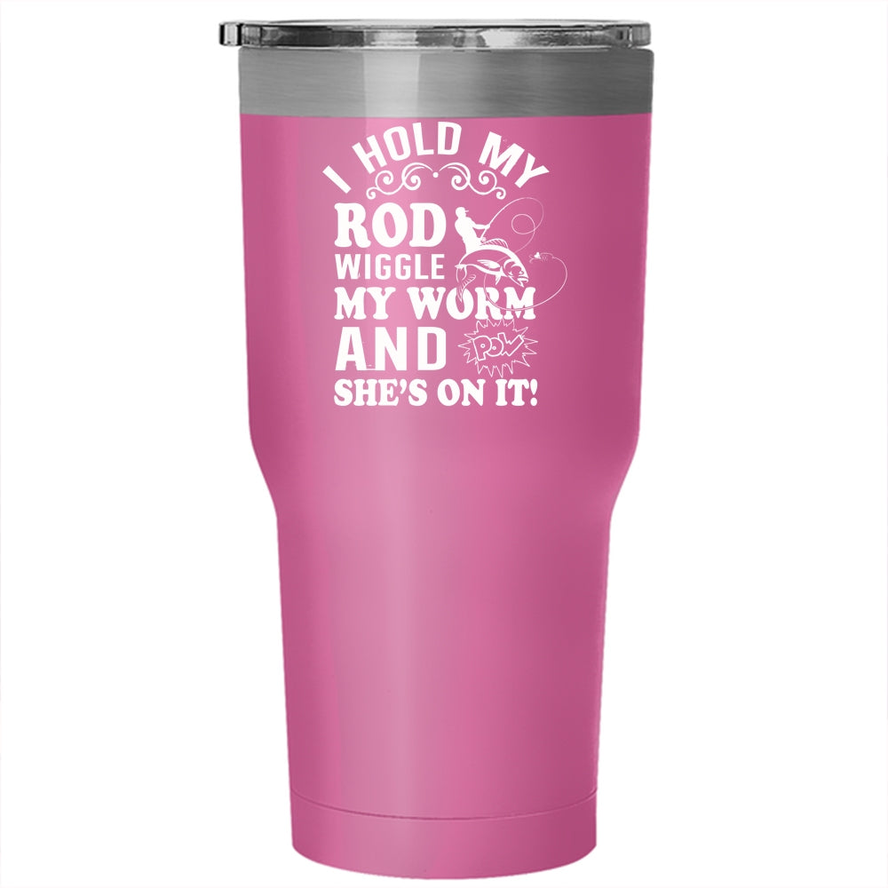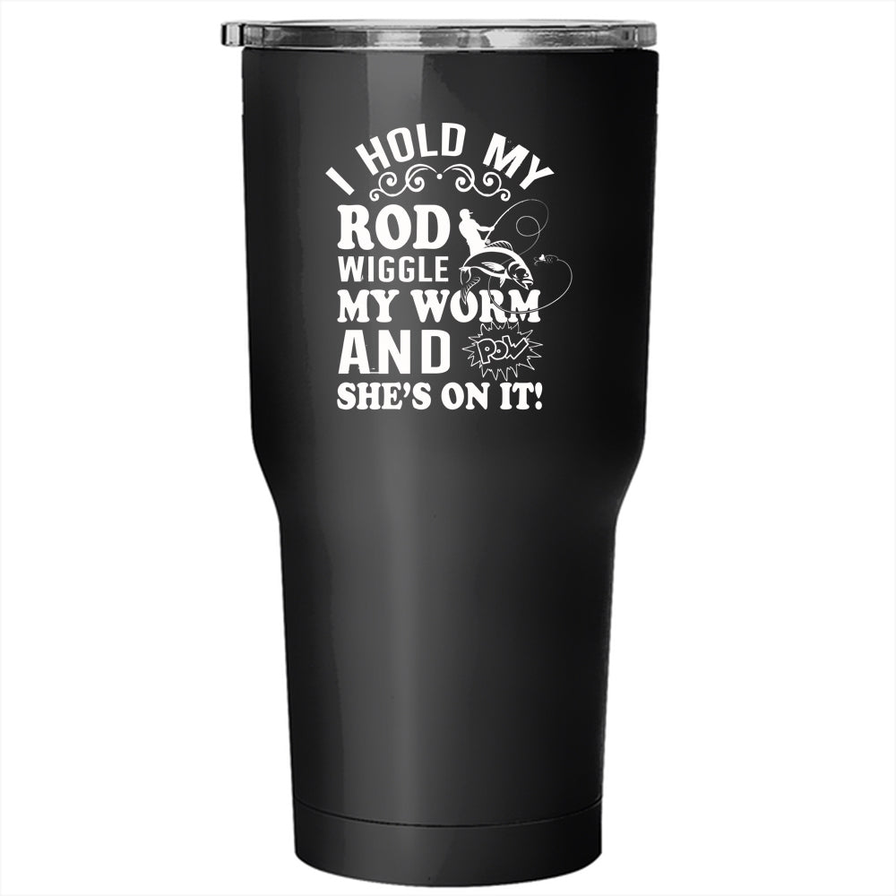 I Hold My Rod Wiggle My Worm Tumbler 30 oz Stainless Steel, Funny Fishing Travel Mug