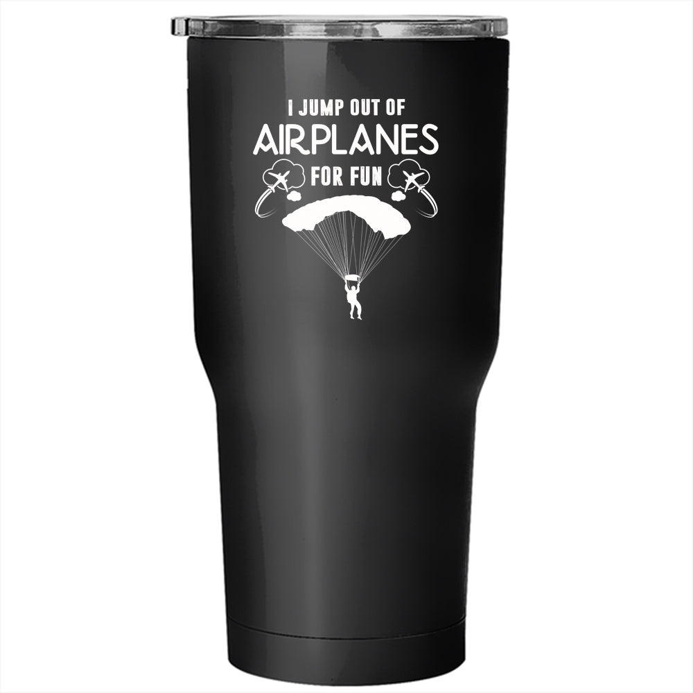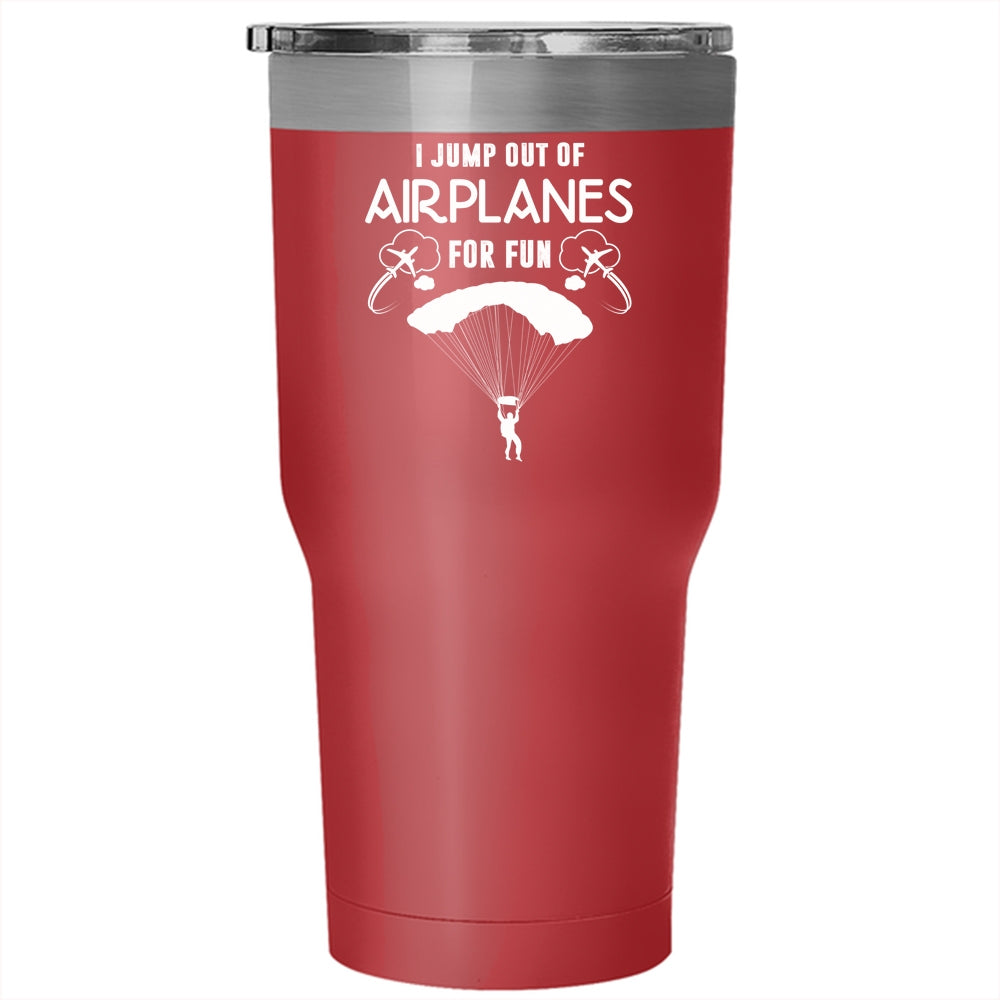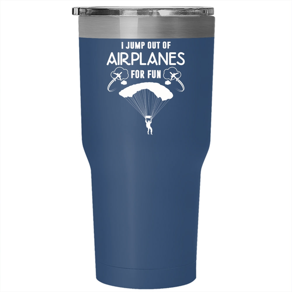 I Jump Out Of Airplanes For Fun Tumbler 30 oz Stainless Steel, Cool Skydiver Travel Mug