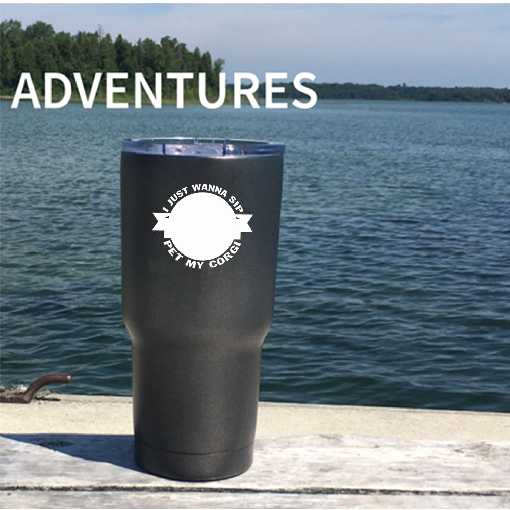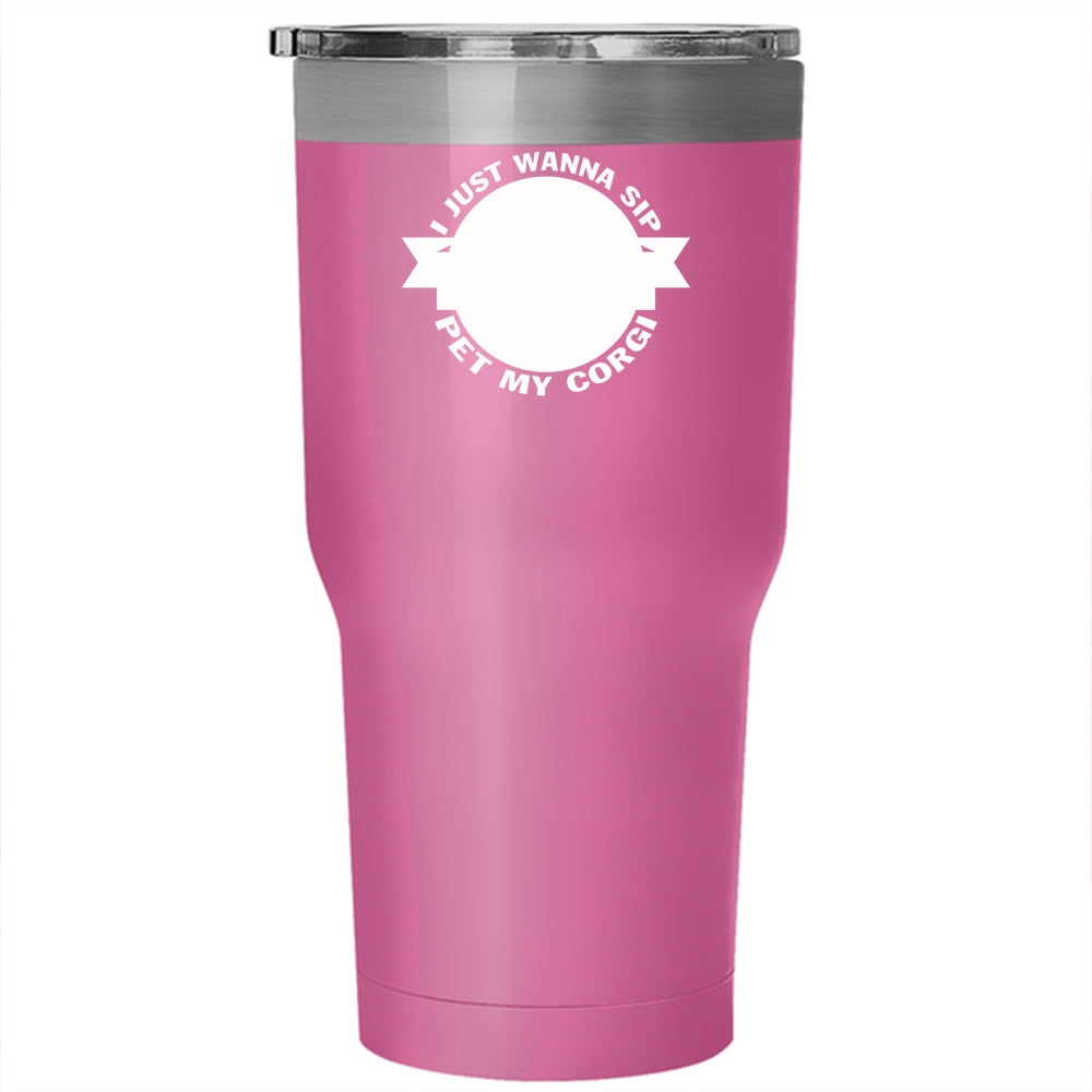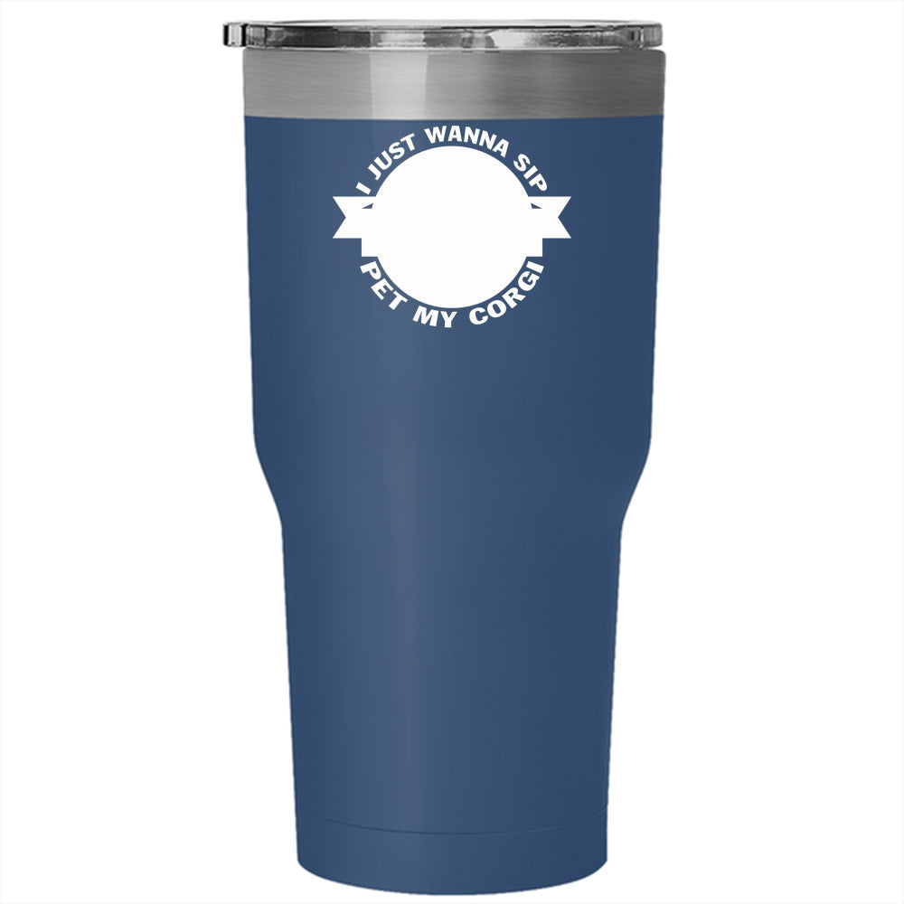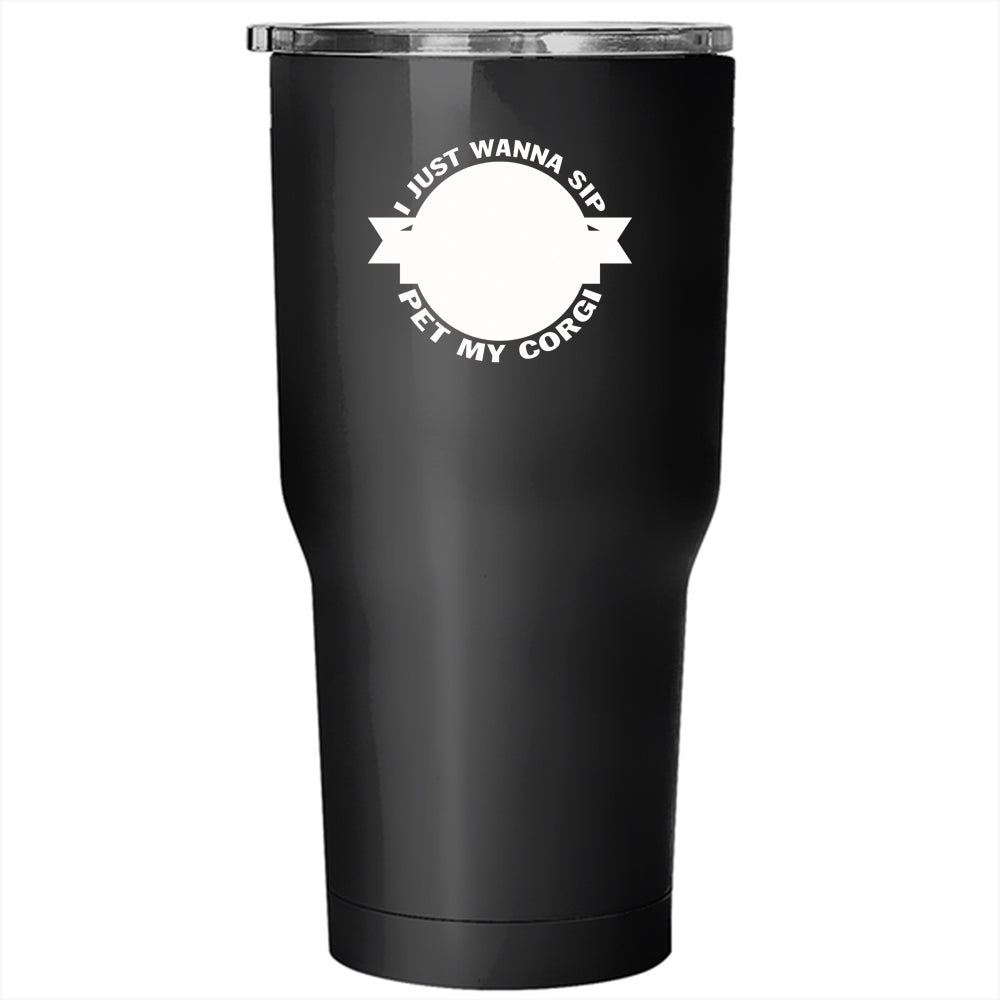 I Just Wanna Sip Coffee And Pet Tumbler 30 oz Stainless Steel, My Corgi Travel Mug