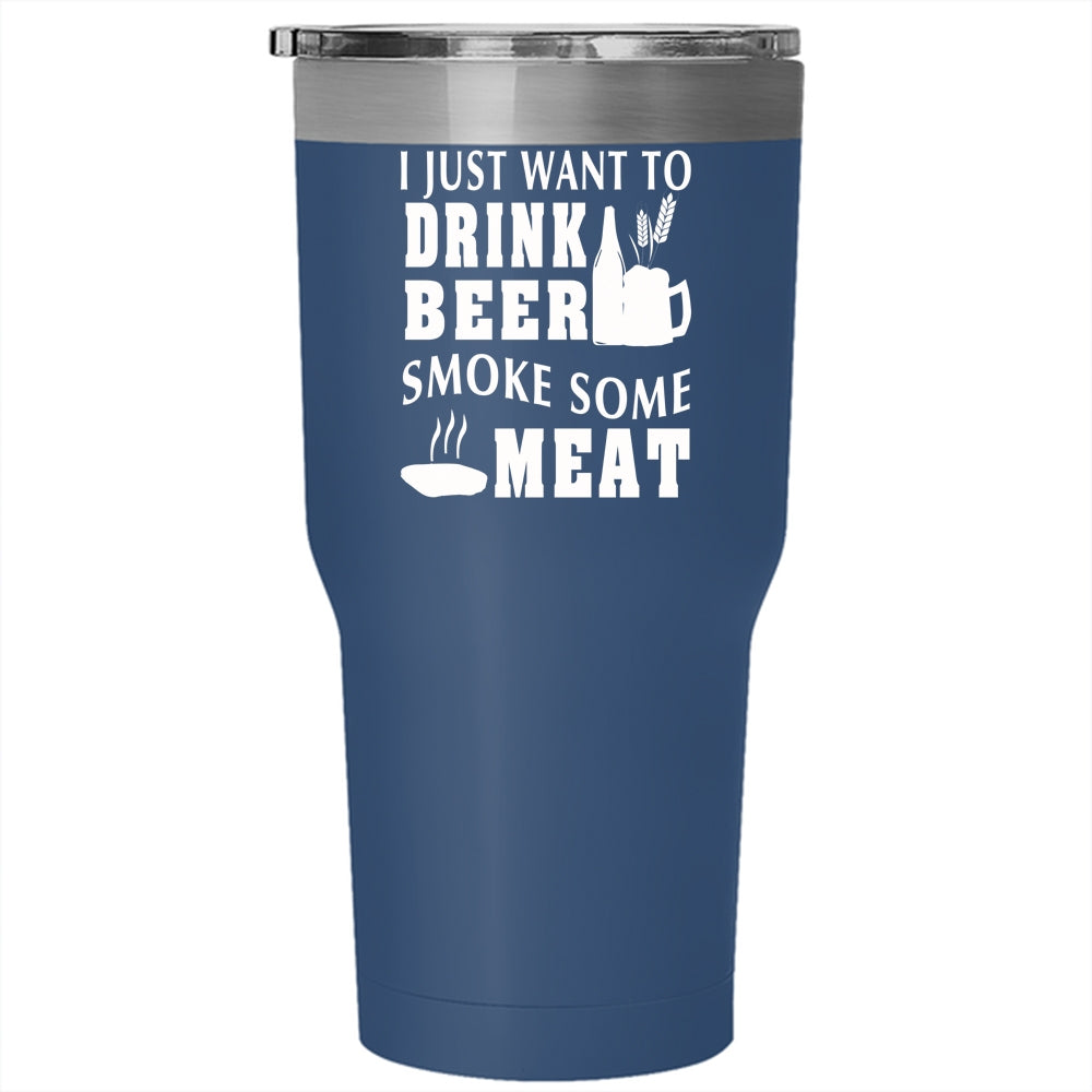 I Just Want To Drink Beer Smoke Some Meat Tumbler 30 oz Stainless Steel, Funny Travel Mug