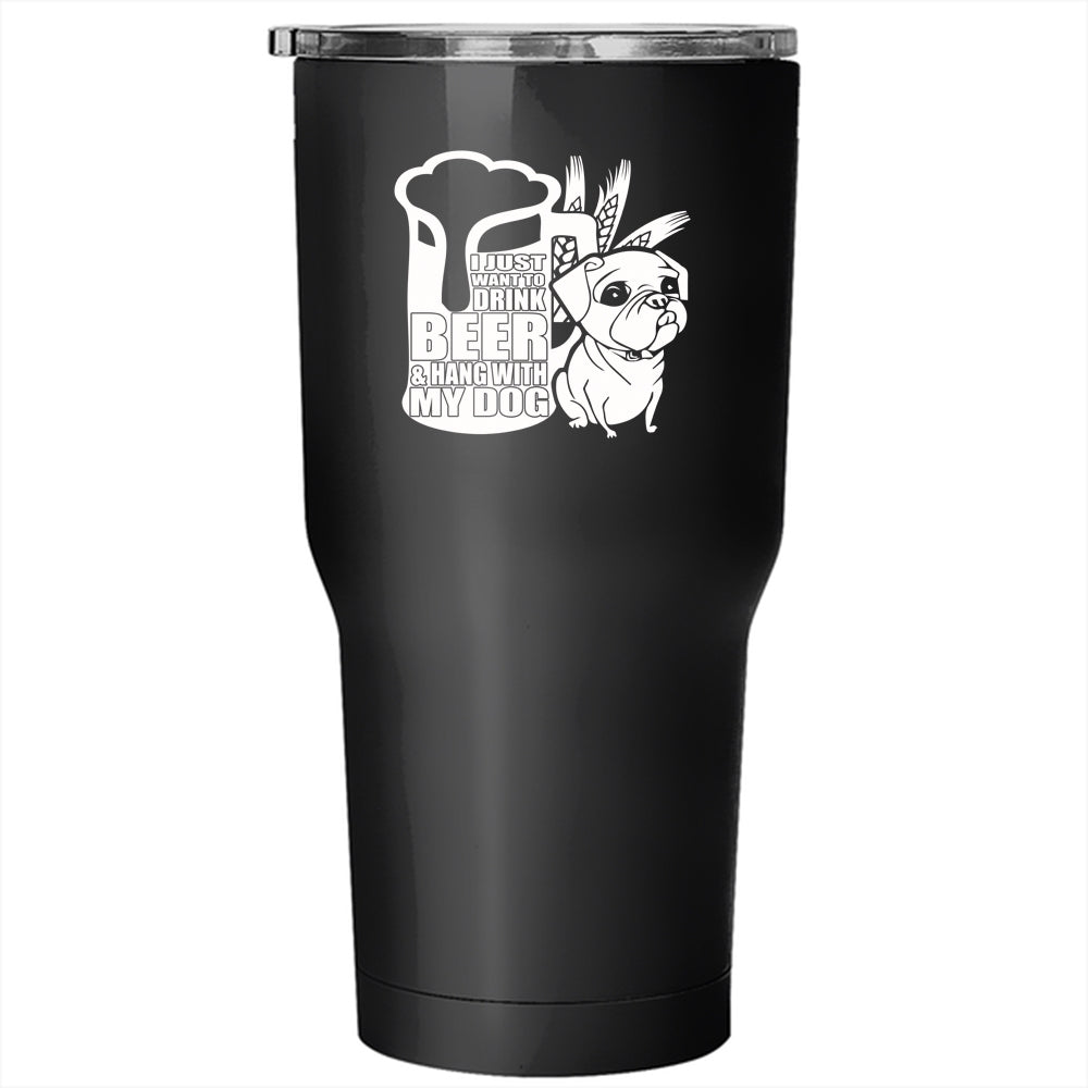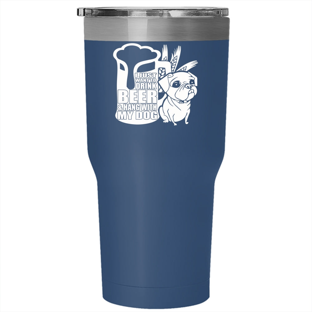 I Just Want To Drink Beer Tumbler 30 oz Stainless Steel, Hang With My Dog Travel Mug
