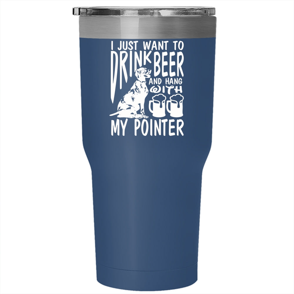 I Just Want To Drink Beer Tumbler 30 oz Stainless Steel, Hang With My Pointer Travel Mug