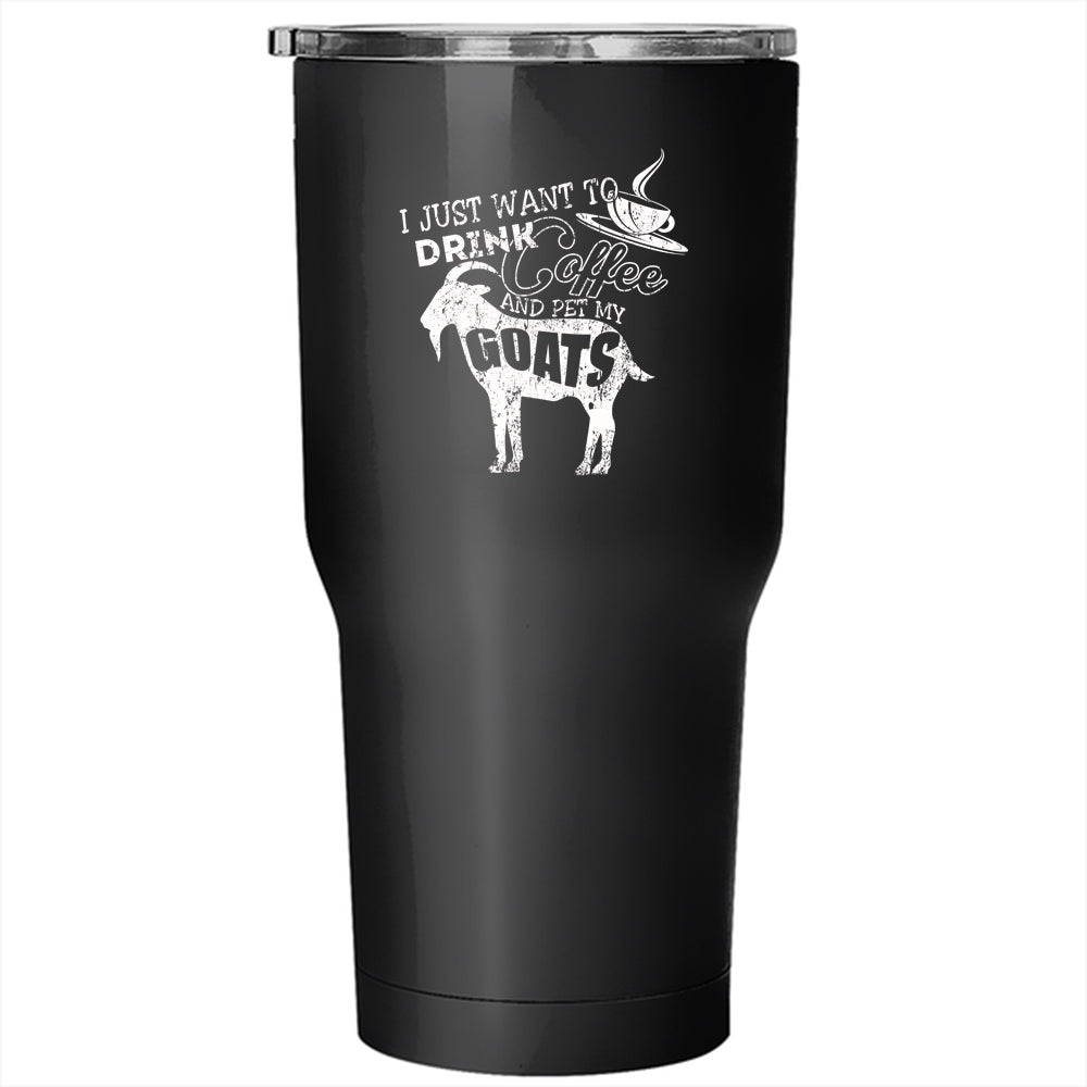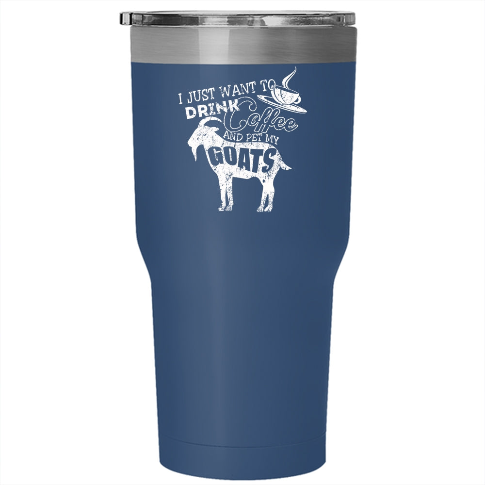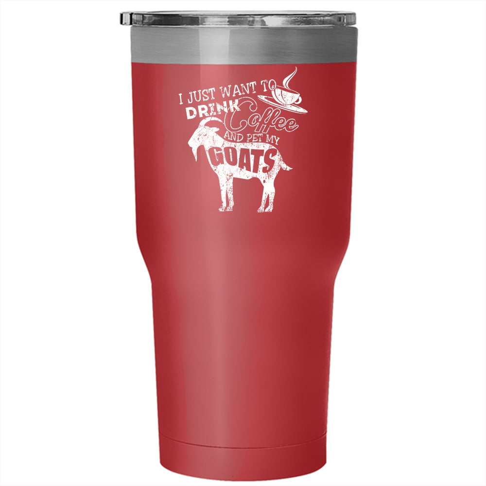 I Just Want To Drink Coffee And Pet Tumbler 30 oz Stainless Steel, My Goats Travel Mug