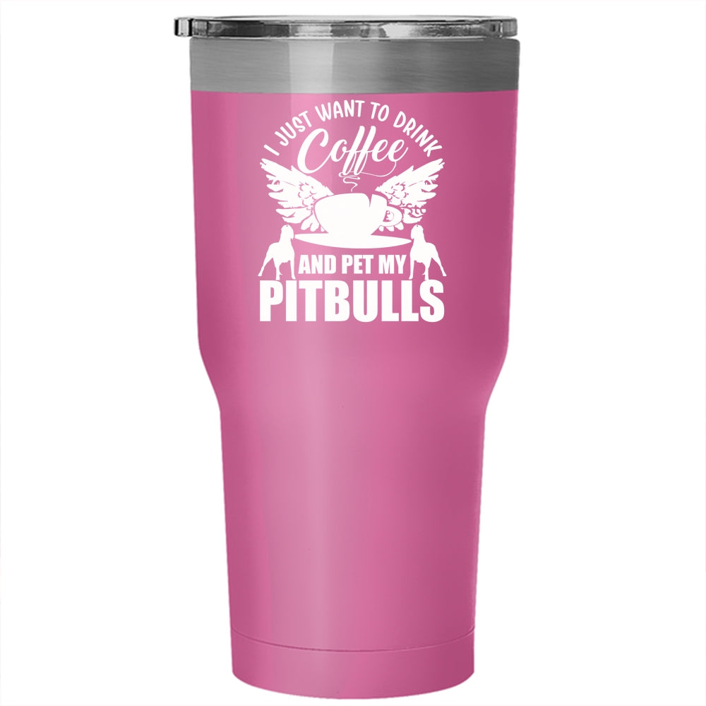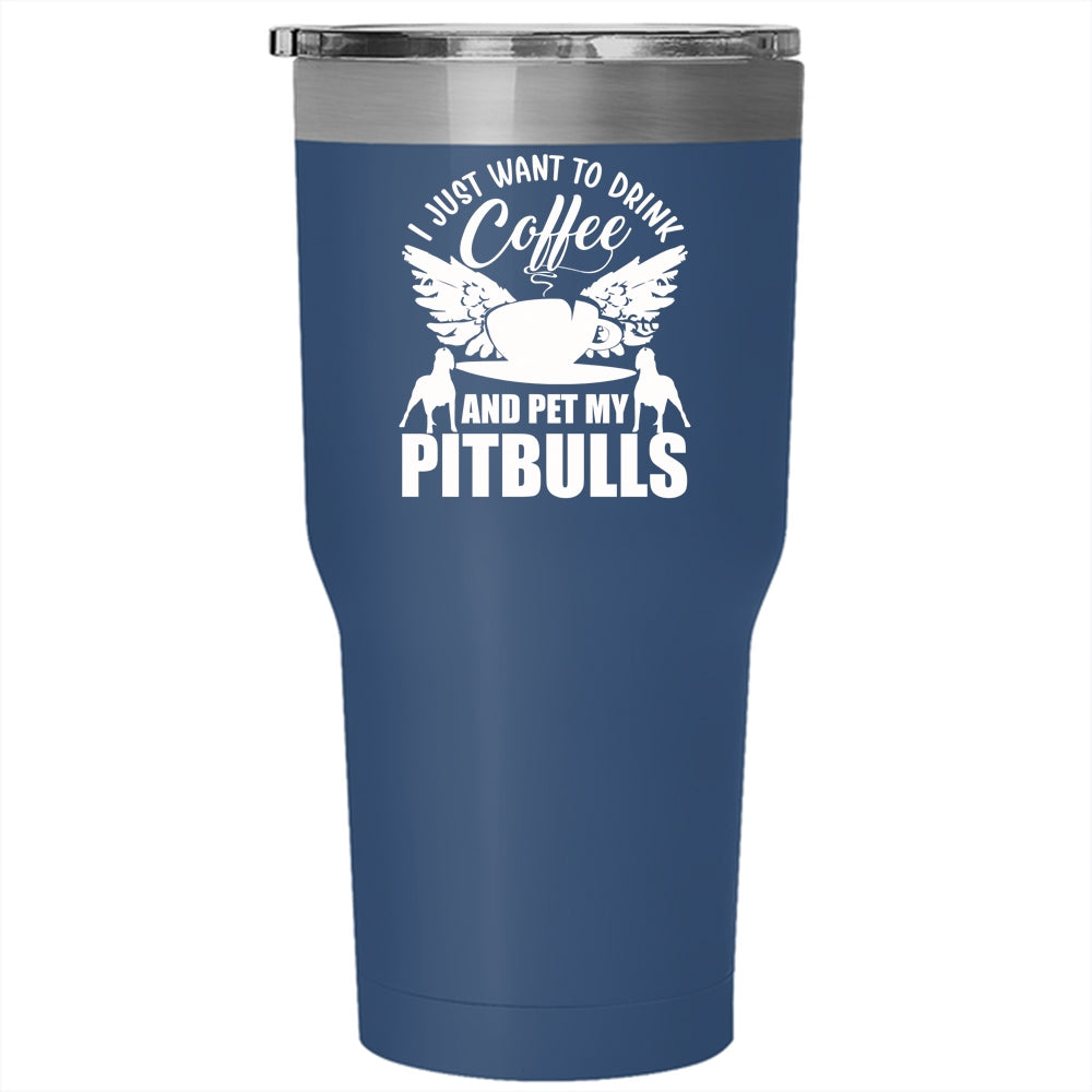 I Just Want To Drink Coffee And Pet Tumbler 30 oz Stainless Steel, My Pitbulls Travel Mug