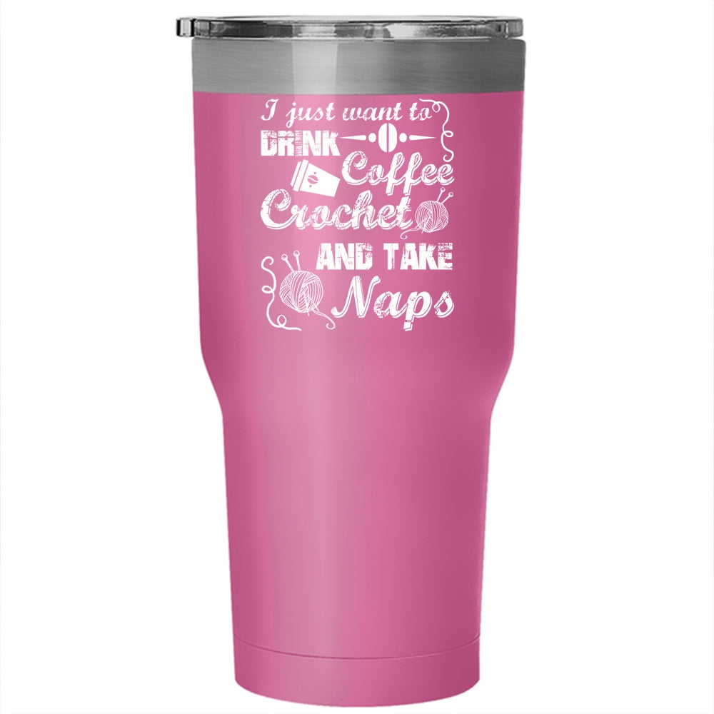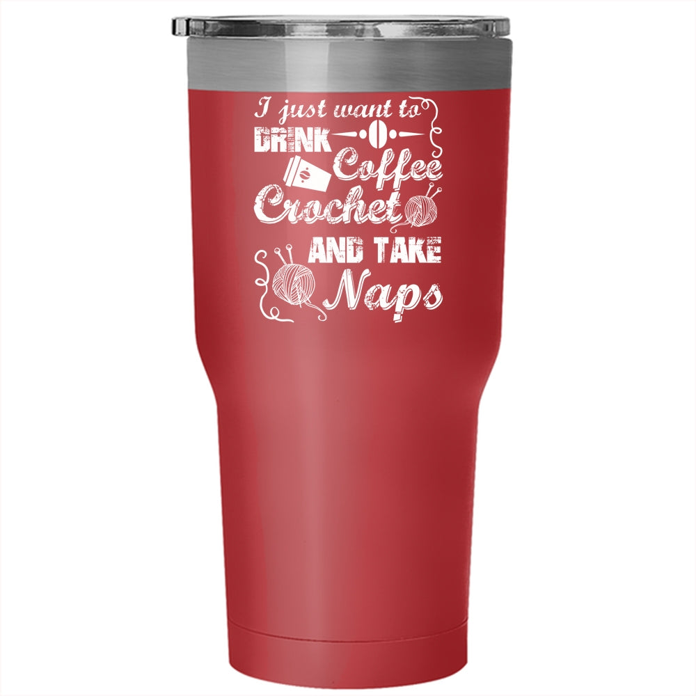 I Just Want To Drink Coffee Crochet Tumbler 30 oz Stainless Steel, Funny Travel Mug
