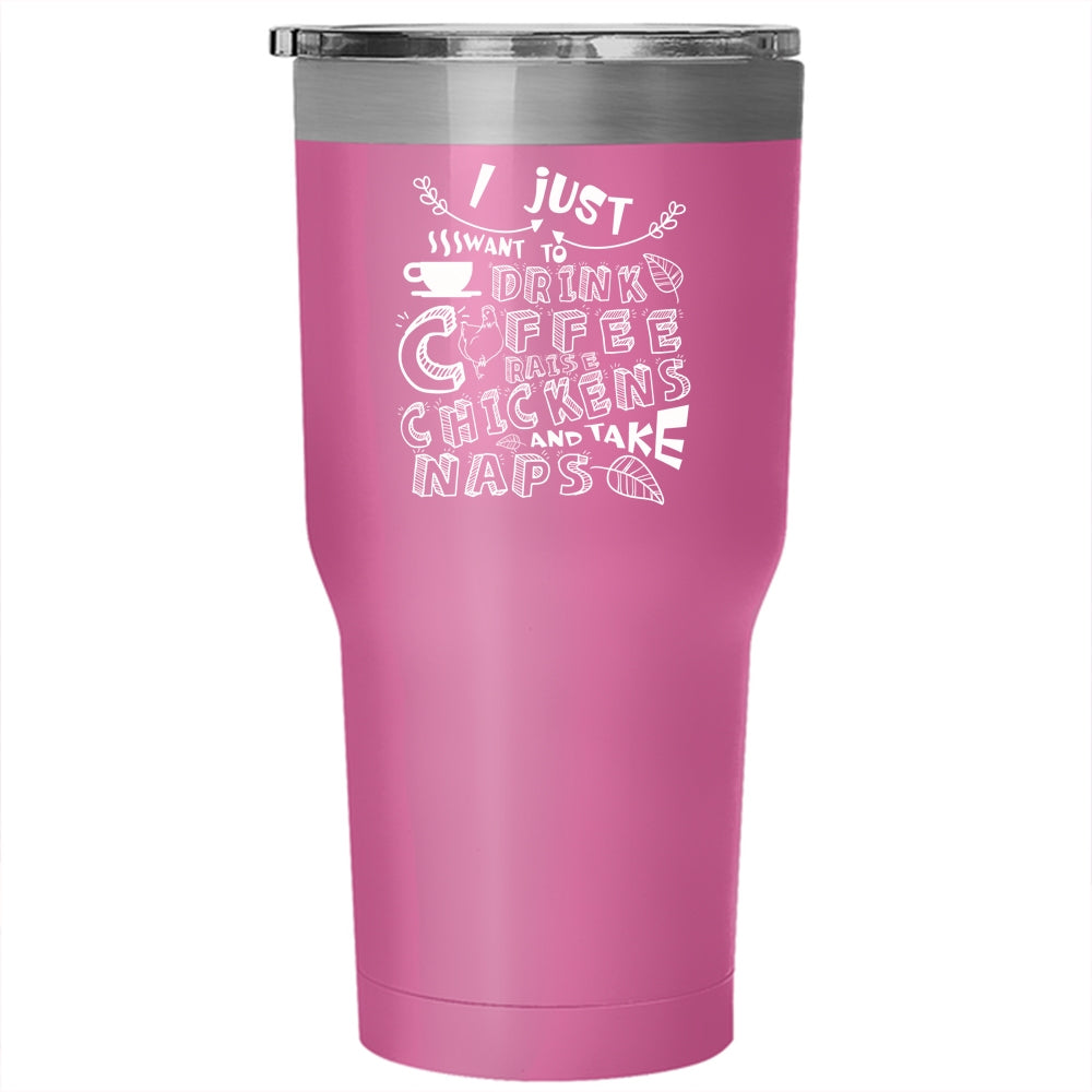 I Just Want To Drink Coffee Tumbler, Chickens And Take Naps Cup