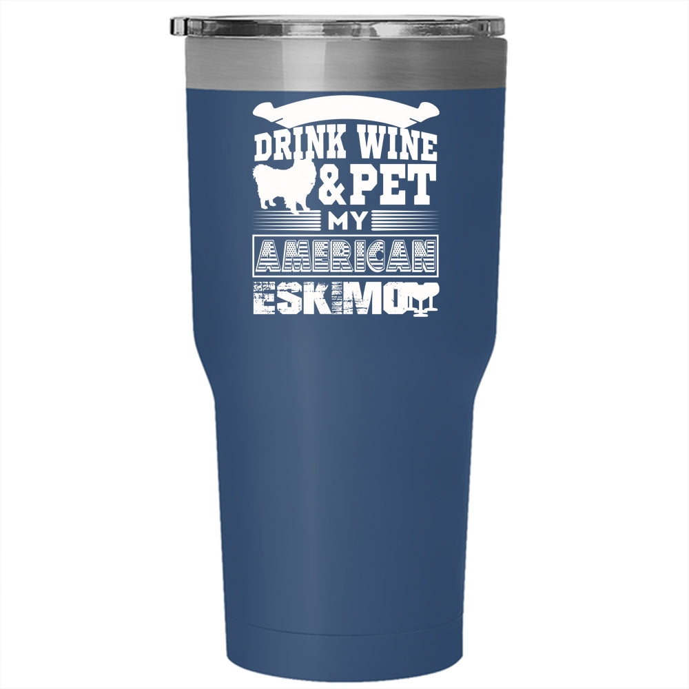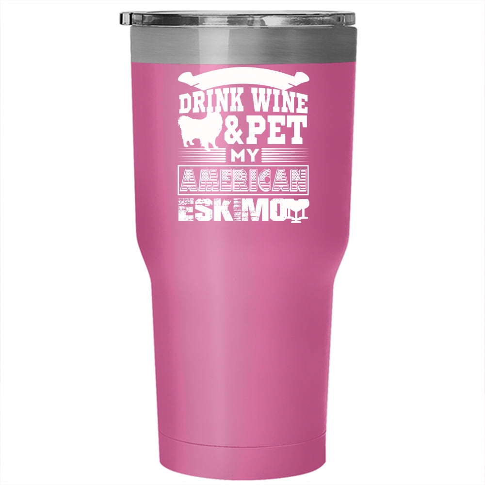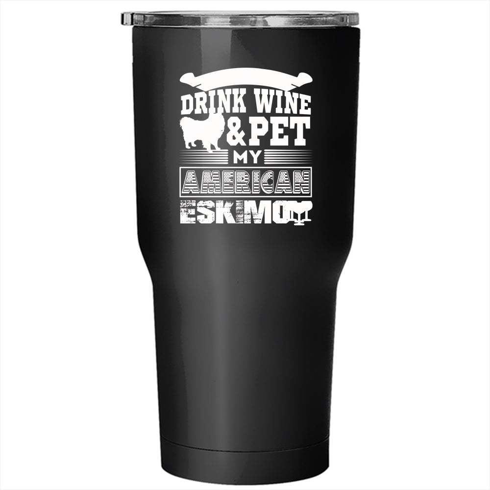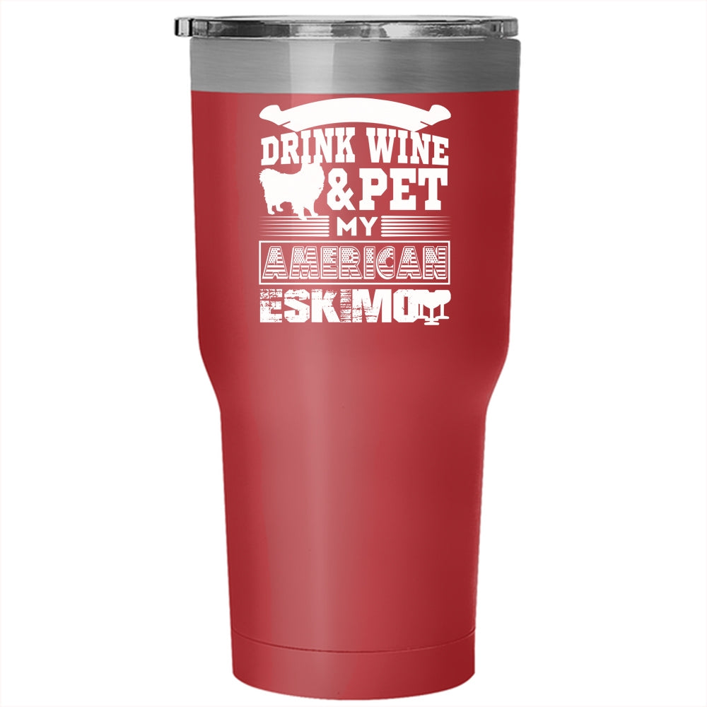 I Just Want To Drink Wine And Pet Tumbler 30 oz Stainless Steel, My American Eskimo Travel Mug