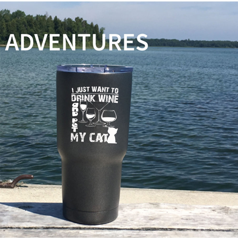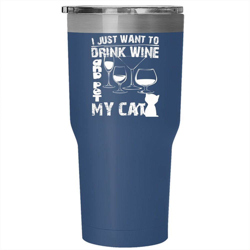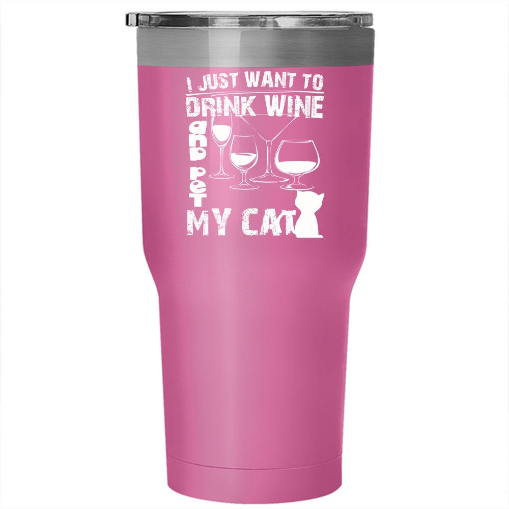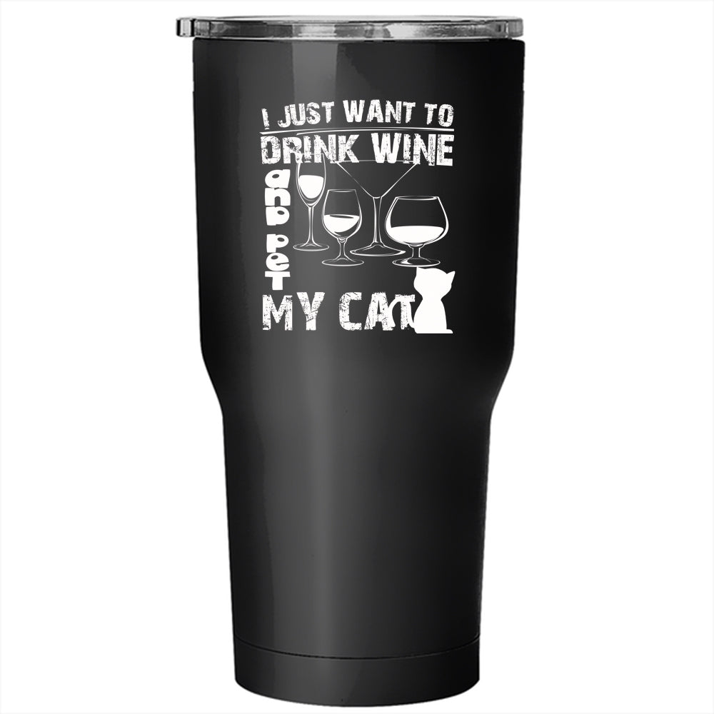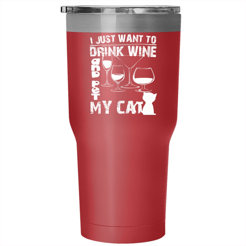 I Just Want To Drink Wine And Pet Tumbler 30 oz Stainless Steel, My Cat Travel Mug