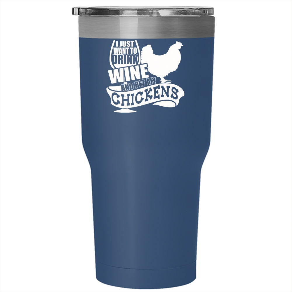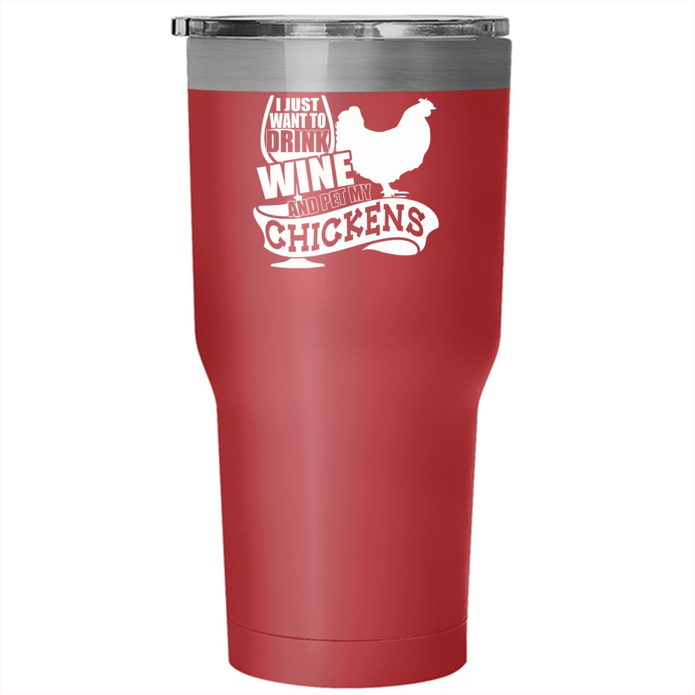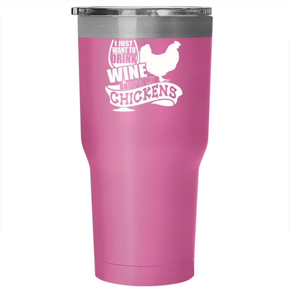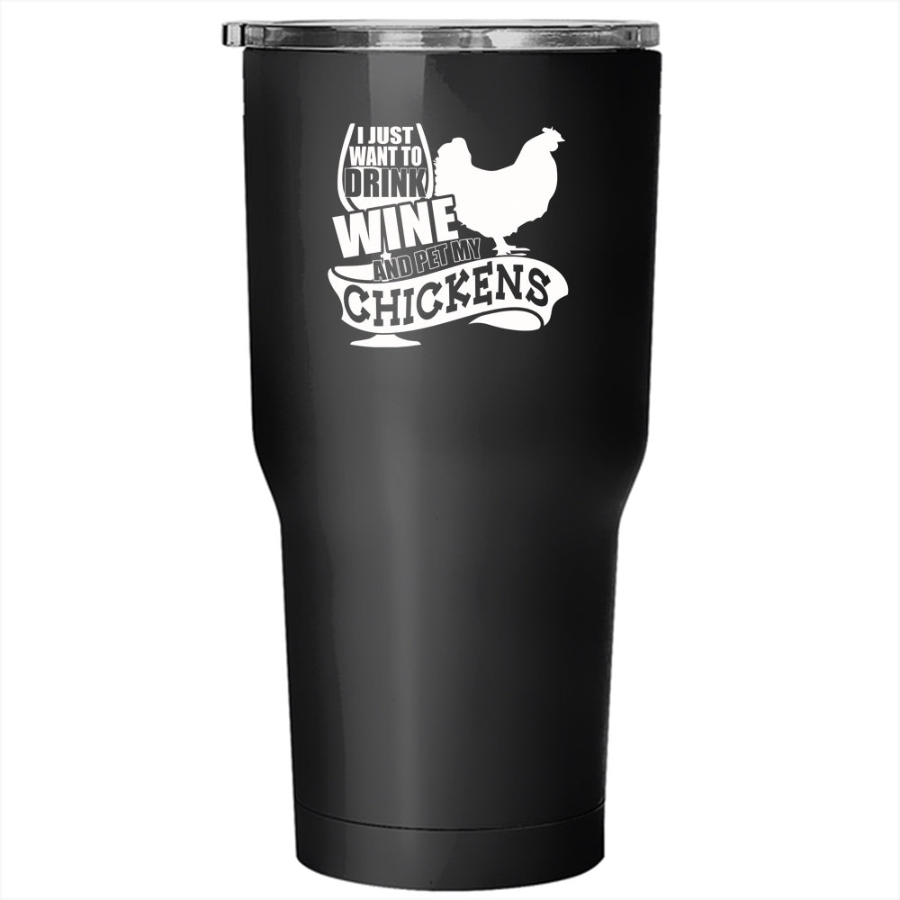 I Just Want To Drink Wine And Pet Tumbler 30 oz Stainless Steel, My Chickens Travel Mug