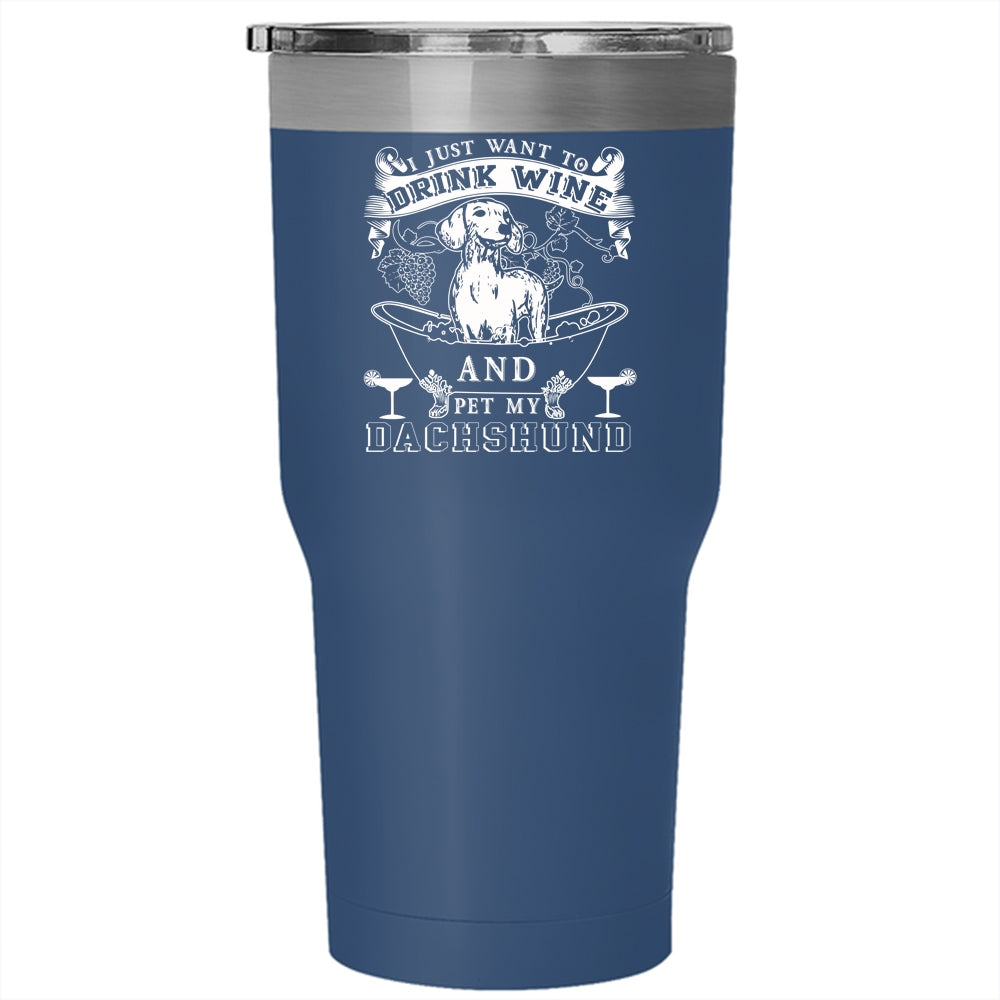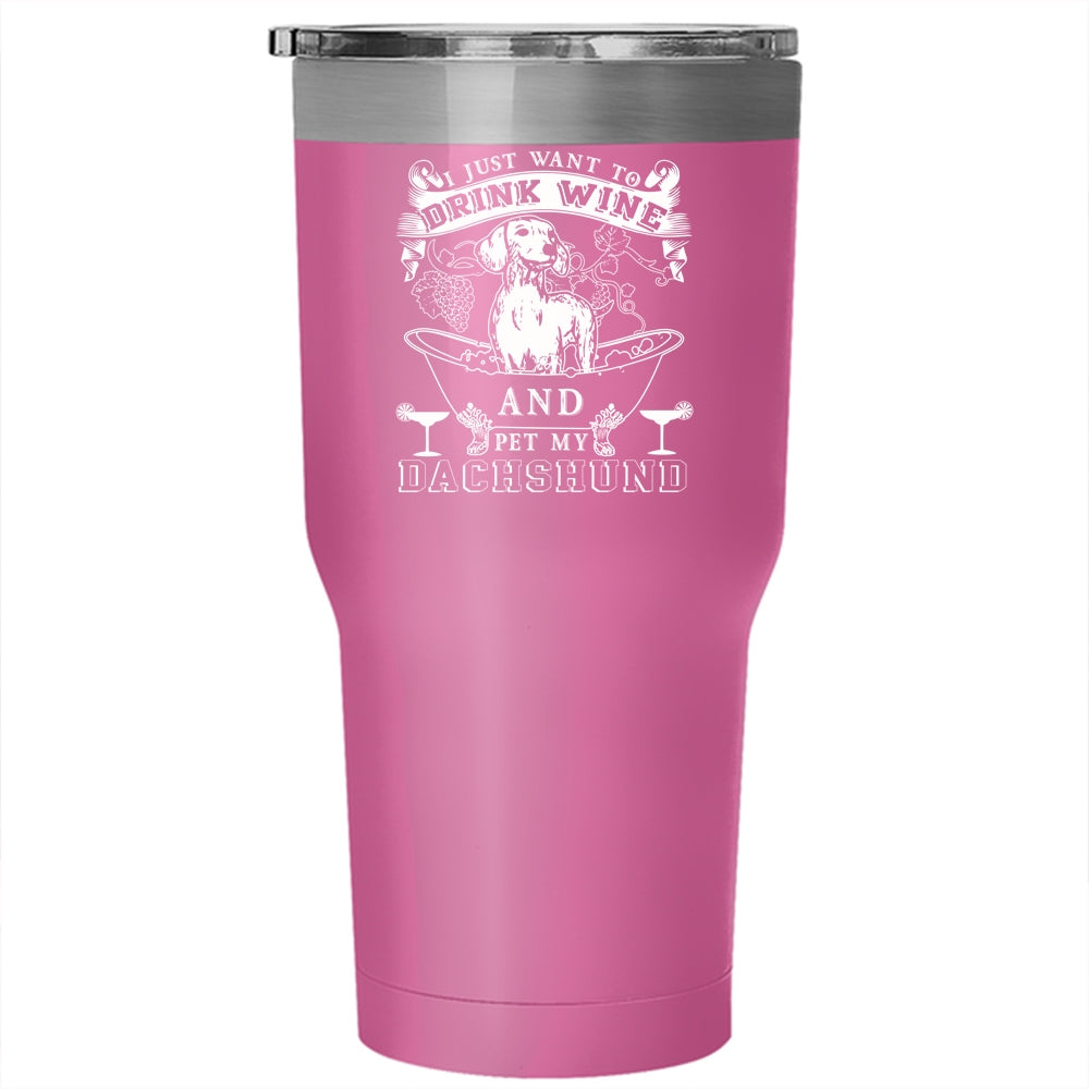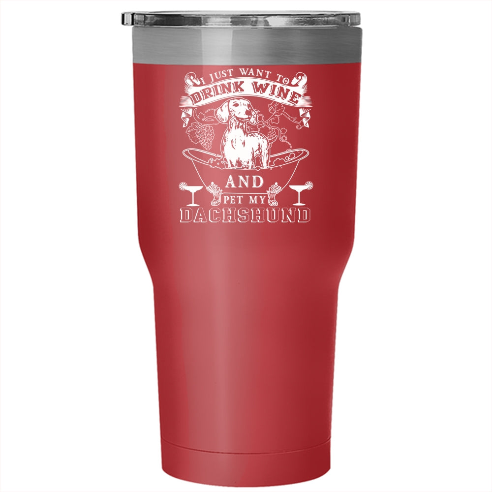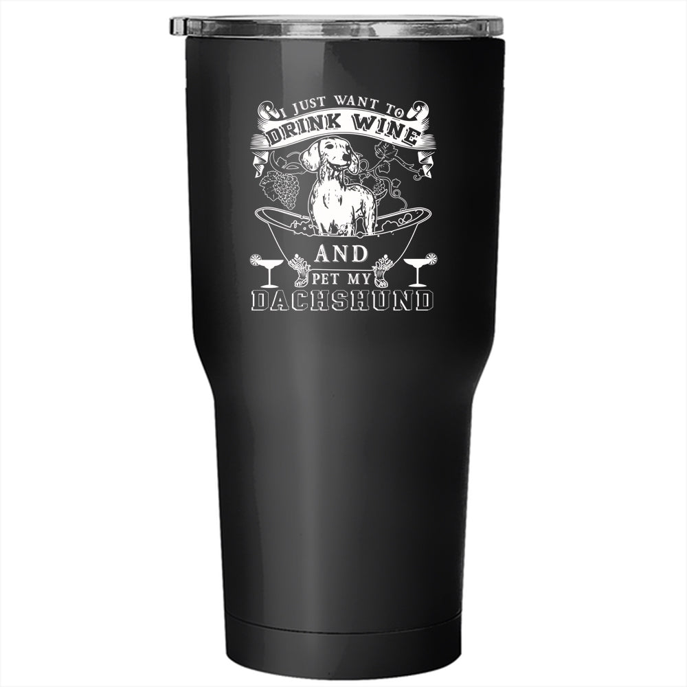 I Just Want To Drink Wine And Pet Tumbler 30 oz Stainless Steel, My Dachshund Travel Mug