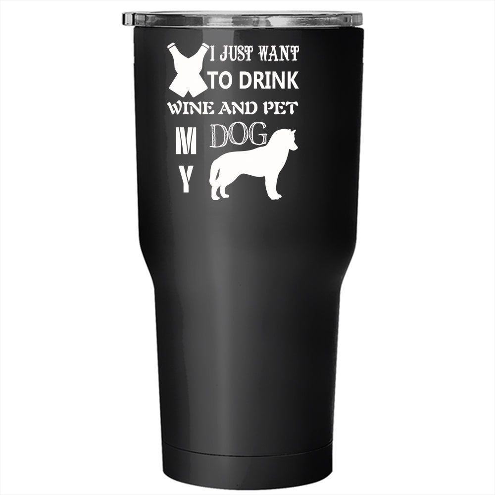 I Just Want To Drink Wine And Pet Tumbler 30 oz Stainless Steel, My Dog Travel Mug