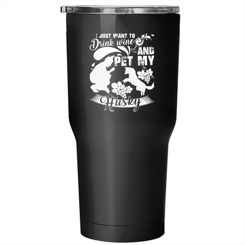 I Just Want To Drink Wine And Pet Tumbler 30 oz Stainless Steel, My Husky Travel Mug