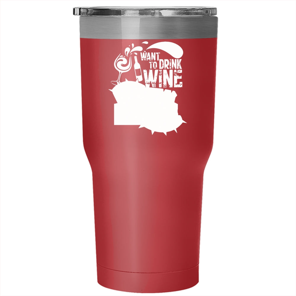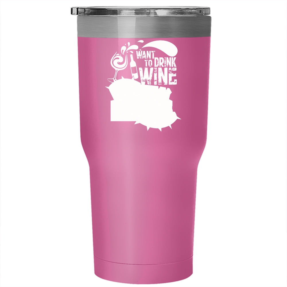 I Just Want To Drink Wine And Pet Tumbler 30 oz Stainless Steel, My Pitbull Travel Mug