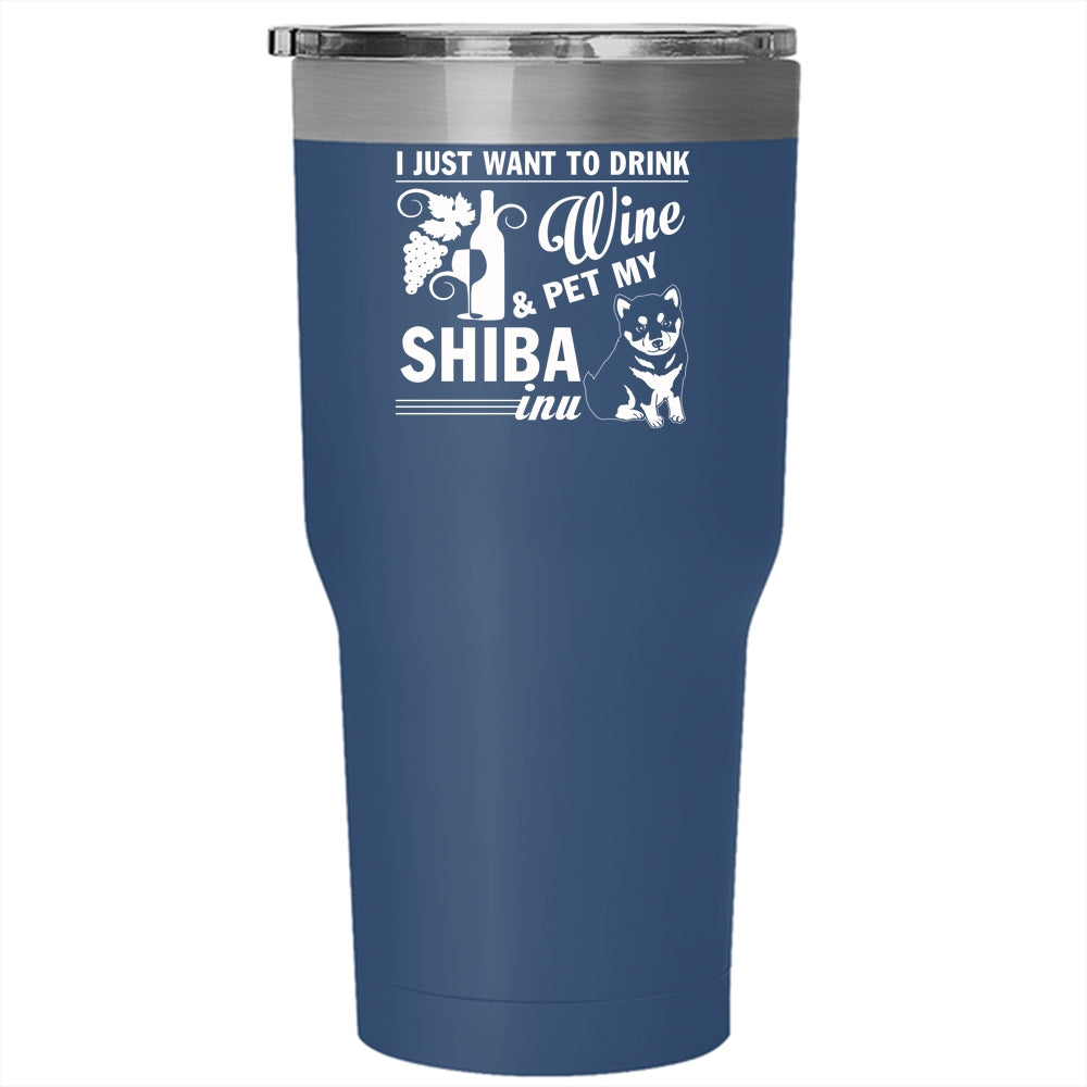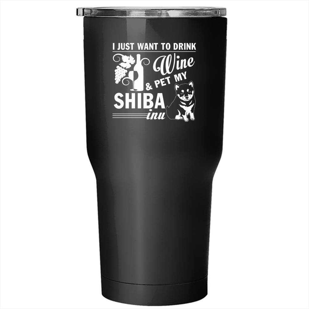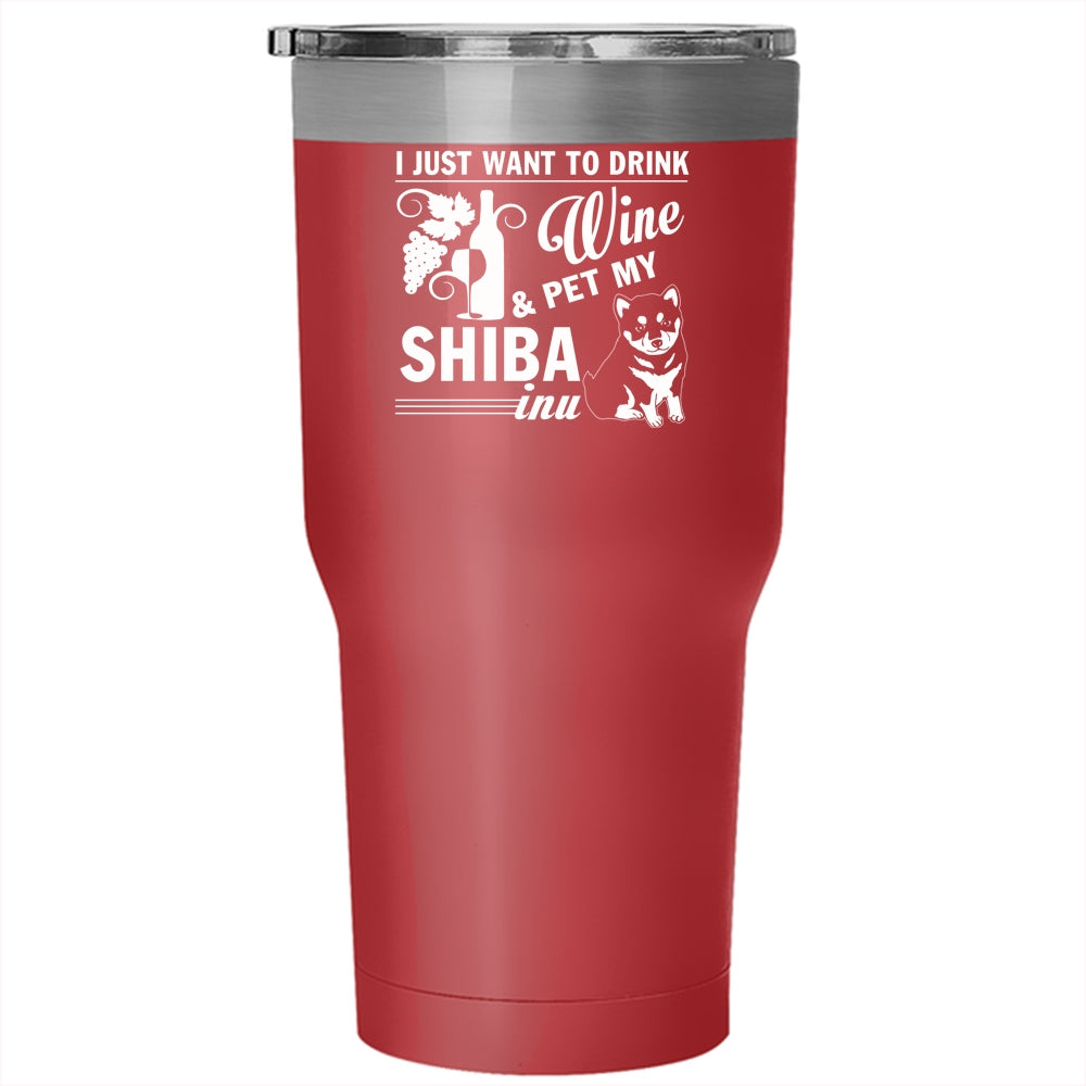 I Just Want To Drink Wine And Pet Tumbler 30 oz Stainless Steel, My Shiba Inu Travel Mug
