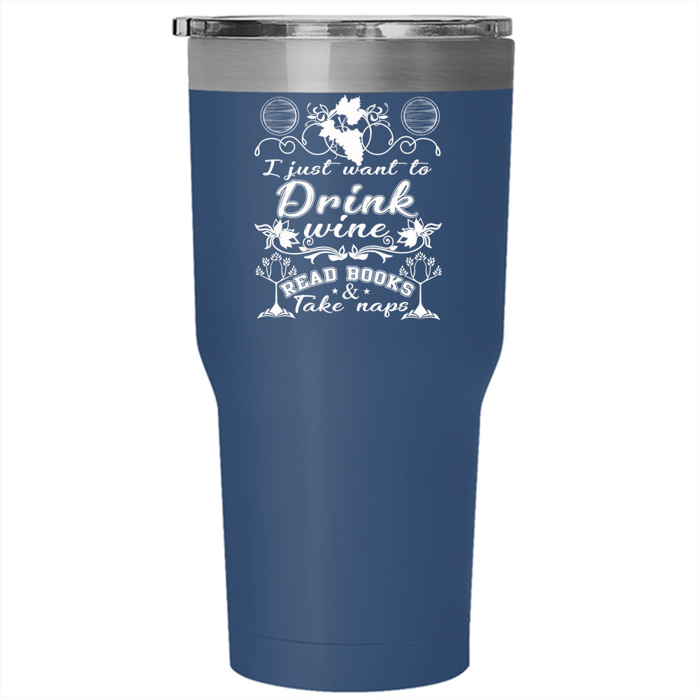I Just Want To Drink Wine Read Books Tumbler 30 oz Stainless Steel, Funny Travel Mug