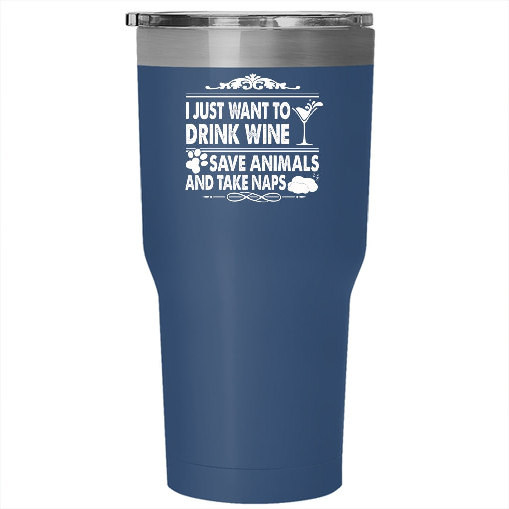 I Just Want To Drink Wine Save Animals Tumbler 30 oz Stainless Steel, Funny Wine Drinker Travel Mug