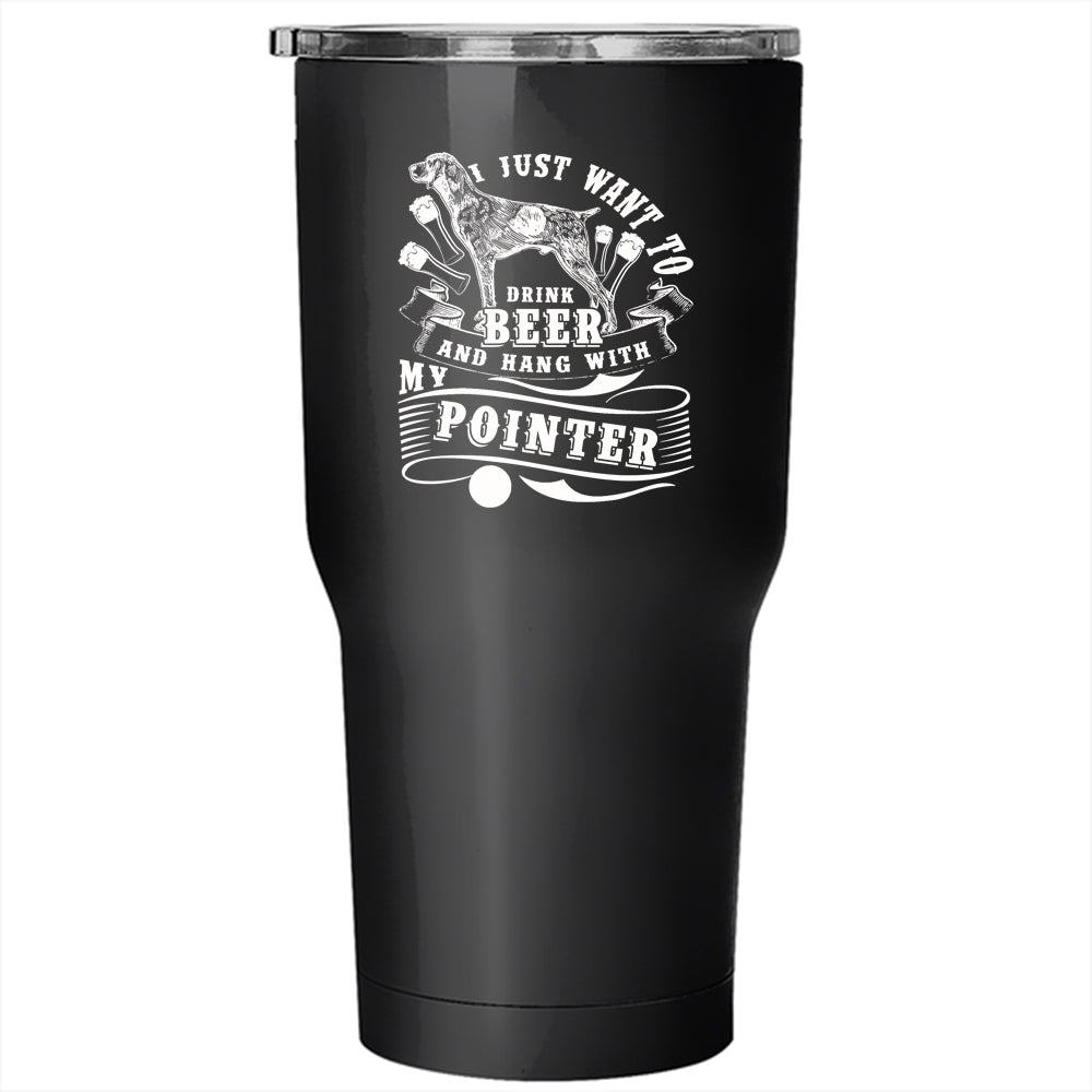 I Just Want To Dtink Beer Tumbler 30 oz Stainless Steel, Hang With My Pointer Travel Mug