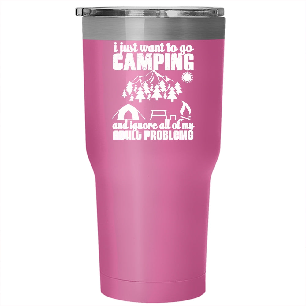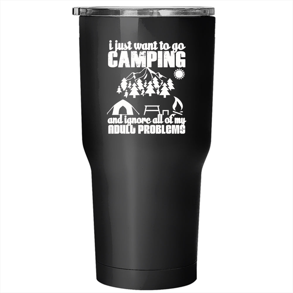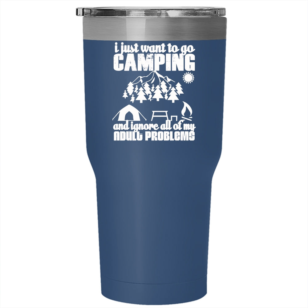 I Just Want To Go Camping Tumbler 30 oz Stainless Steel, Funny Camping Travel Mug