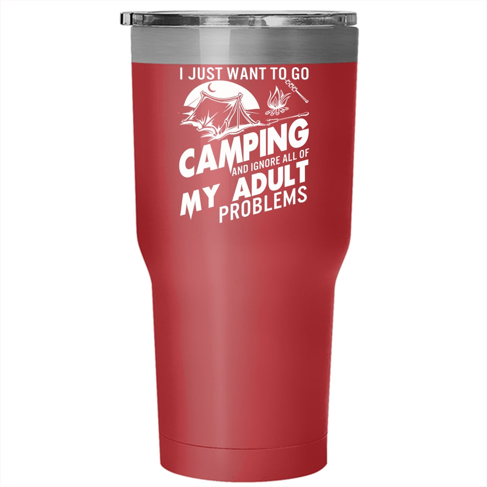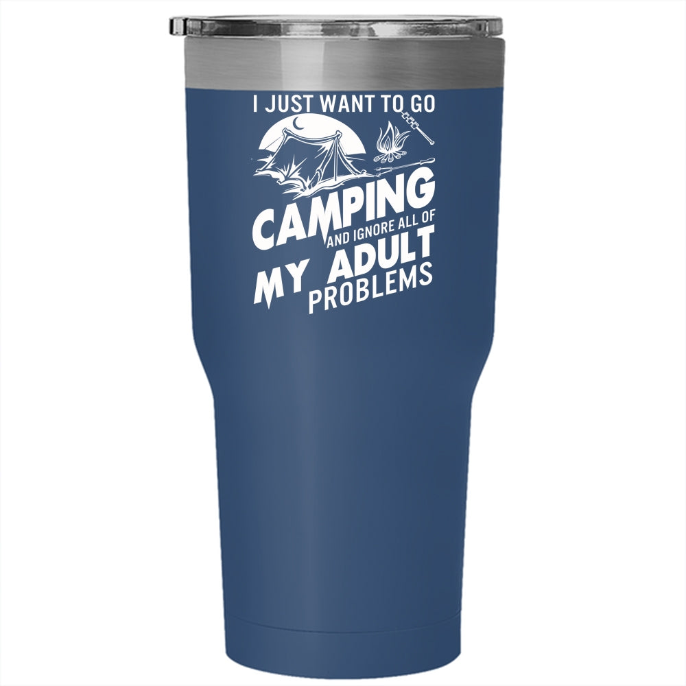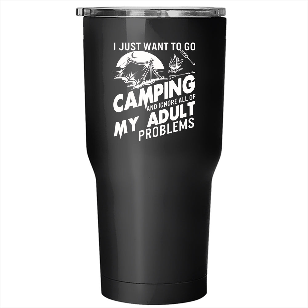I Just Want To Go Camping Tumbler 30 oz Stainless Steel, Outdoor Travel Mug