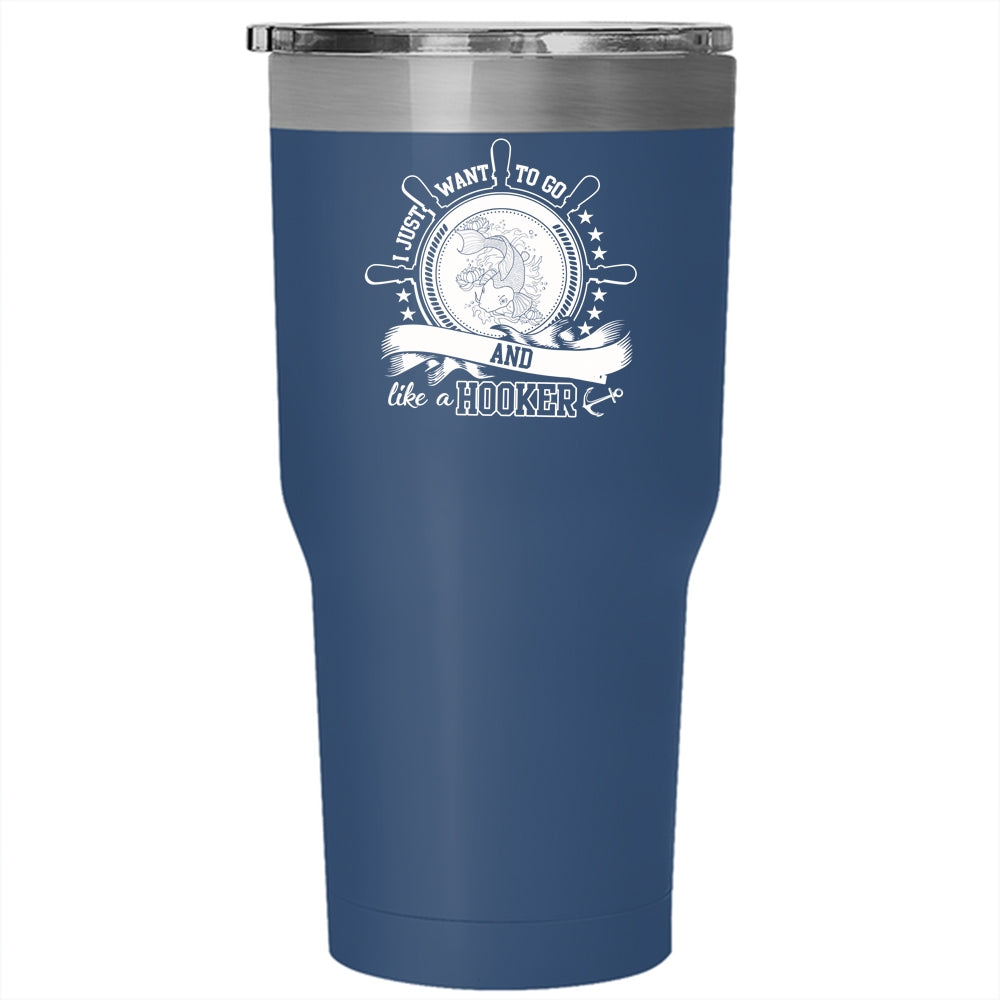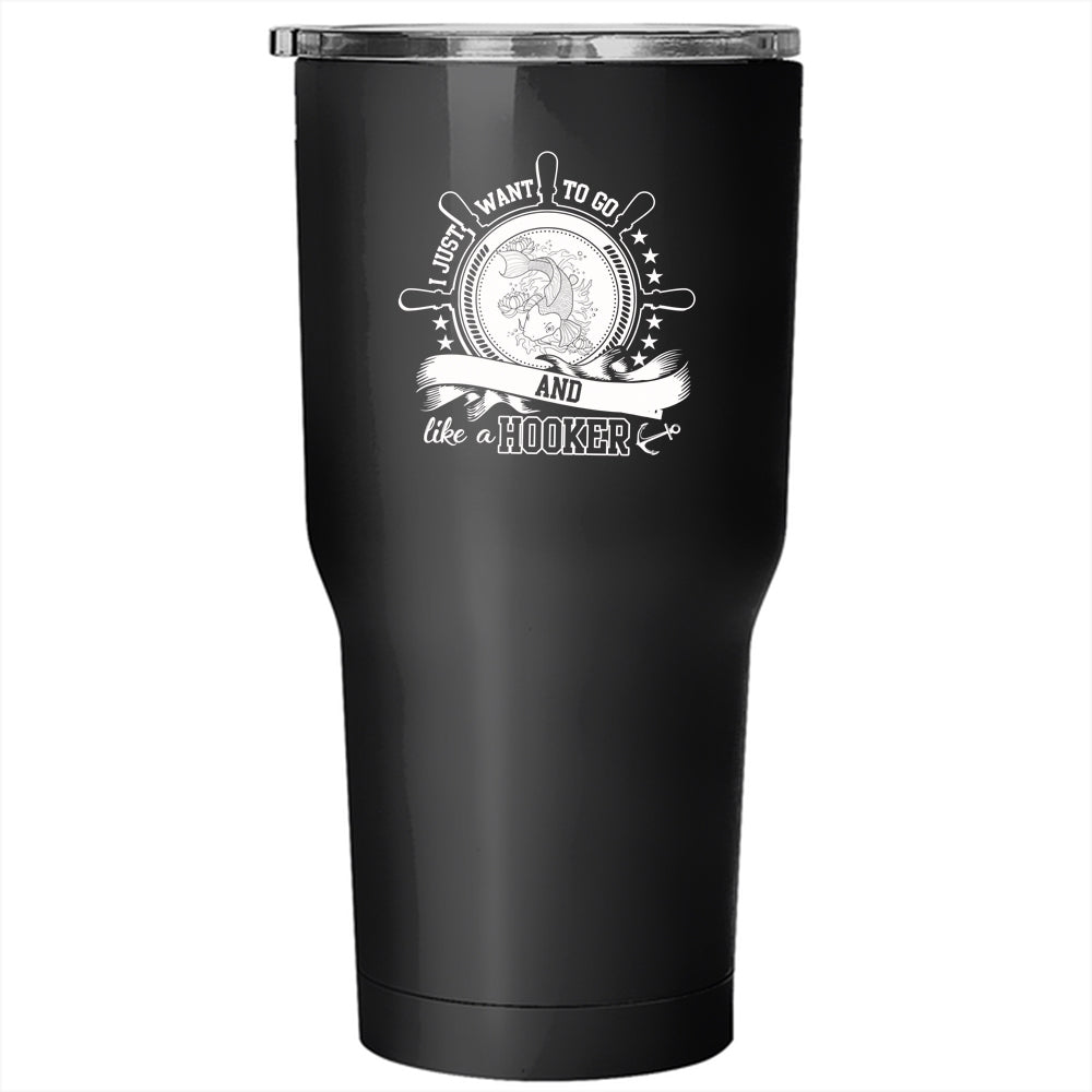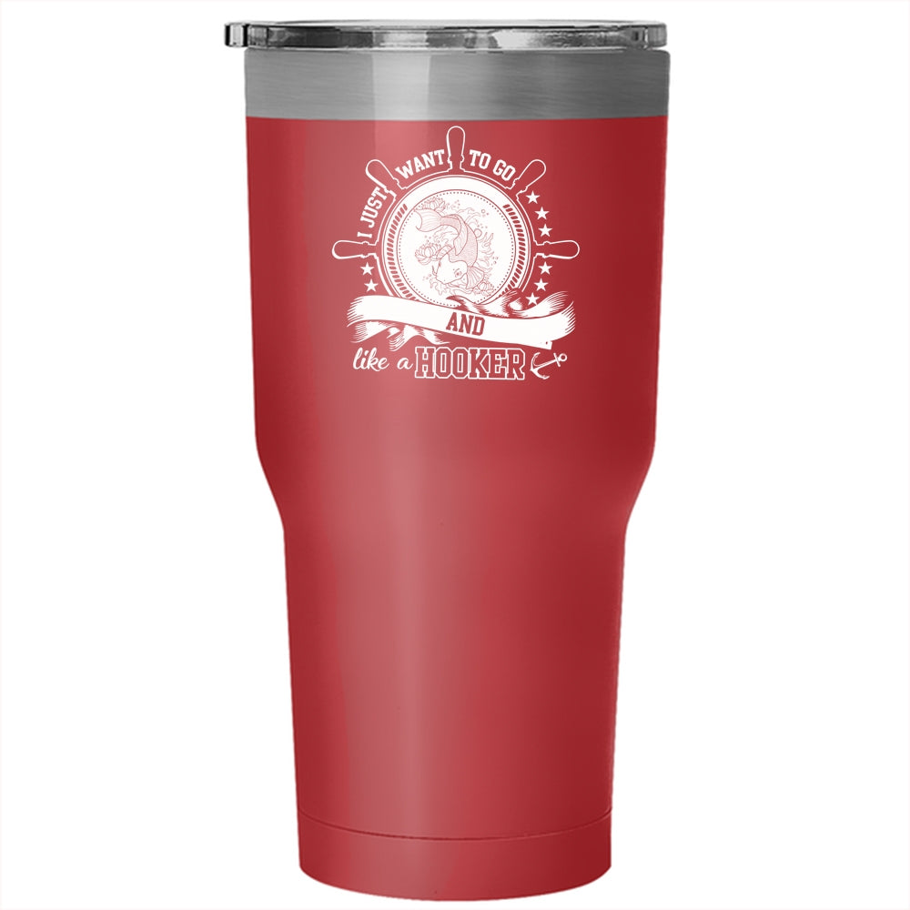 I Just Want To Go Fishing Tumbler 30 oz Stainless Steel, Funny Fisher Travel Mug
