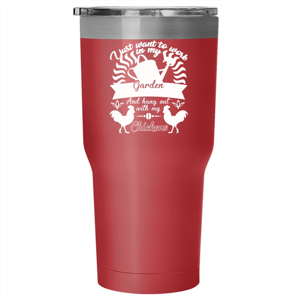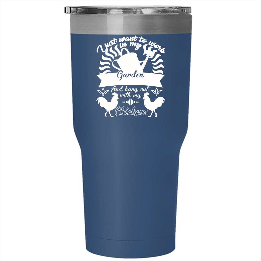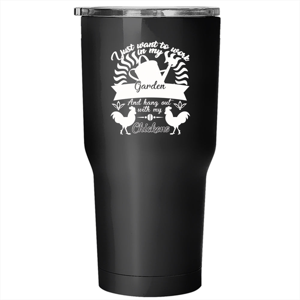 I Just Want To Work In My Garden Tumbler 30 oz Stainless Steel, Drink Coffee And My Chickens Travel Mug