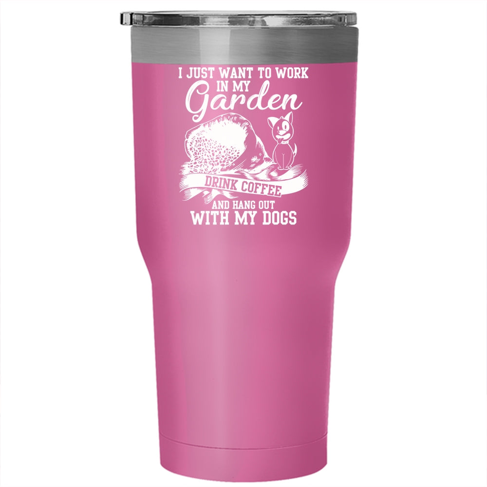 I Just Want To Work In My Garden Tumbler 30 oz Stainless Steel, Drink Coffee And My Dogs Travel Mug