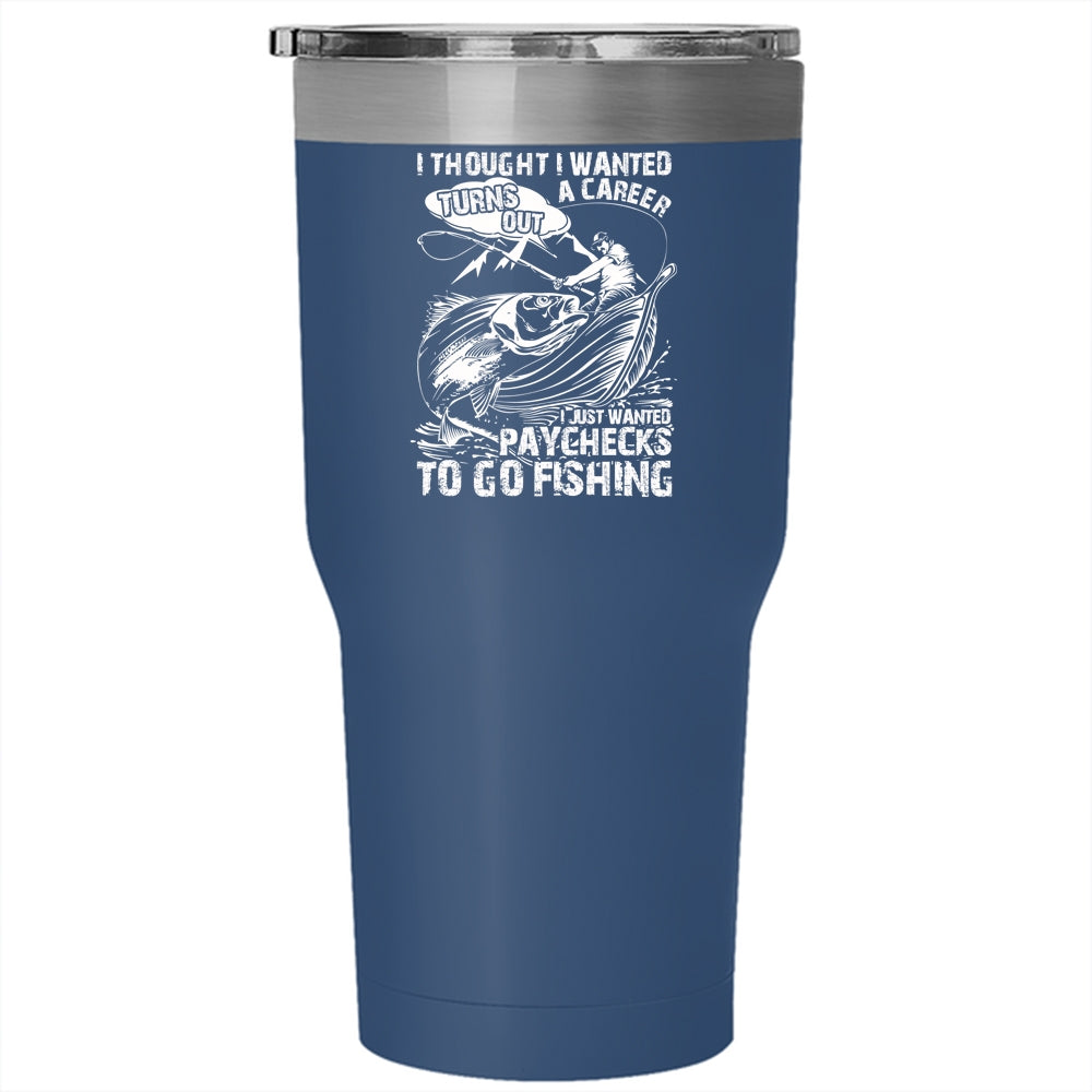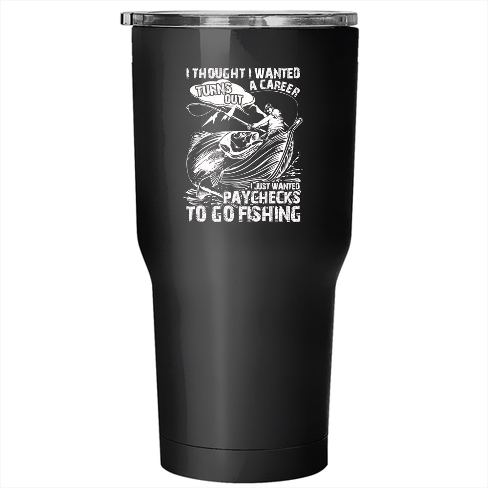 I Just Wanted Paychecks To Go Fishing Tumbler 30 oz Stainless Steel, Go Fishing Travel Mug