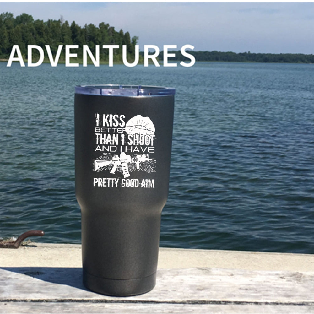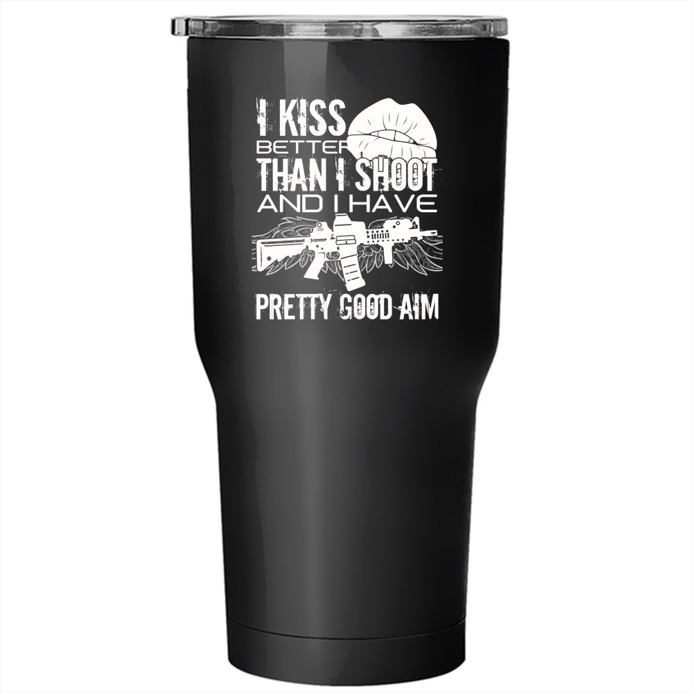I Kiss Better Than I Shoot Tumbler 30 oz Stainless Steel, Funny Gift For Gunner Travel Mug
