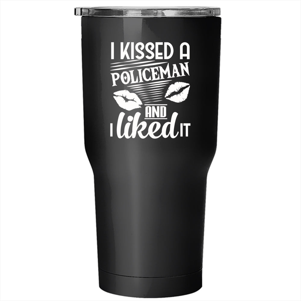 I Kissed A Policeman And I Like it Tumbler 30 oz Stainless Steel, I Love Policeman Travel Mug