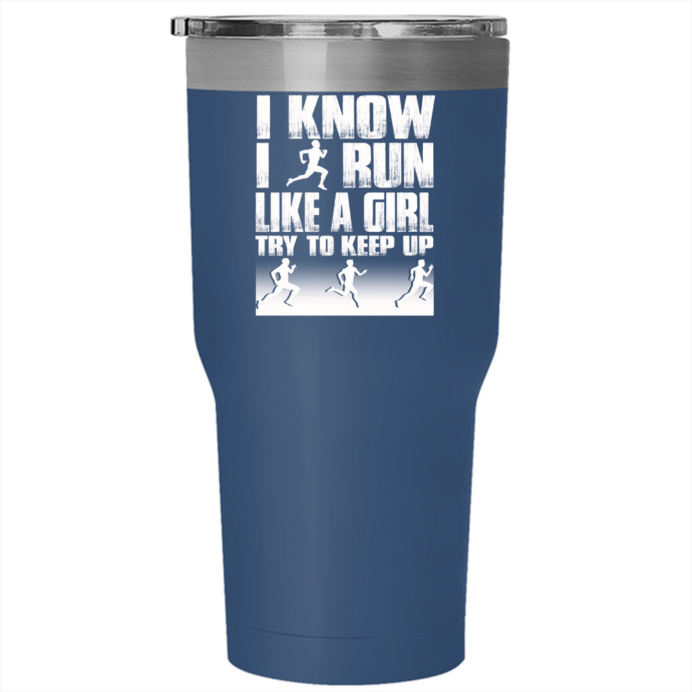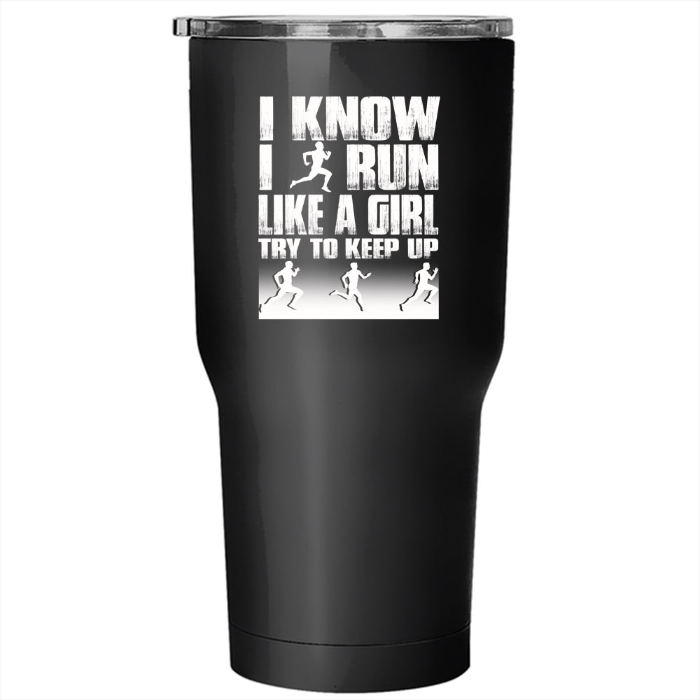 I Know I Run Like A Girl Tumbler 30 oz Stainless Steel, Funny Runner Travel Mug