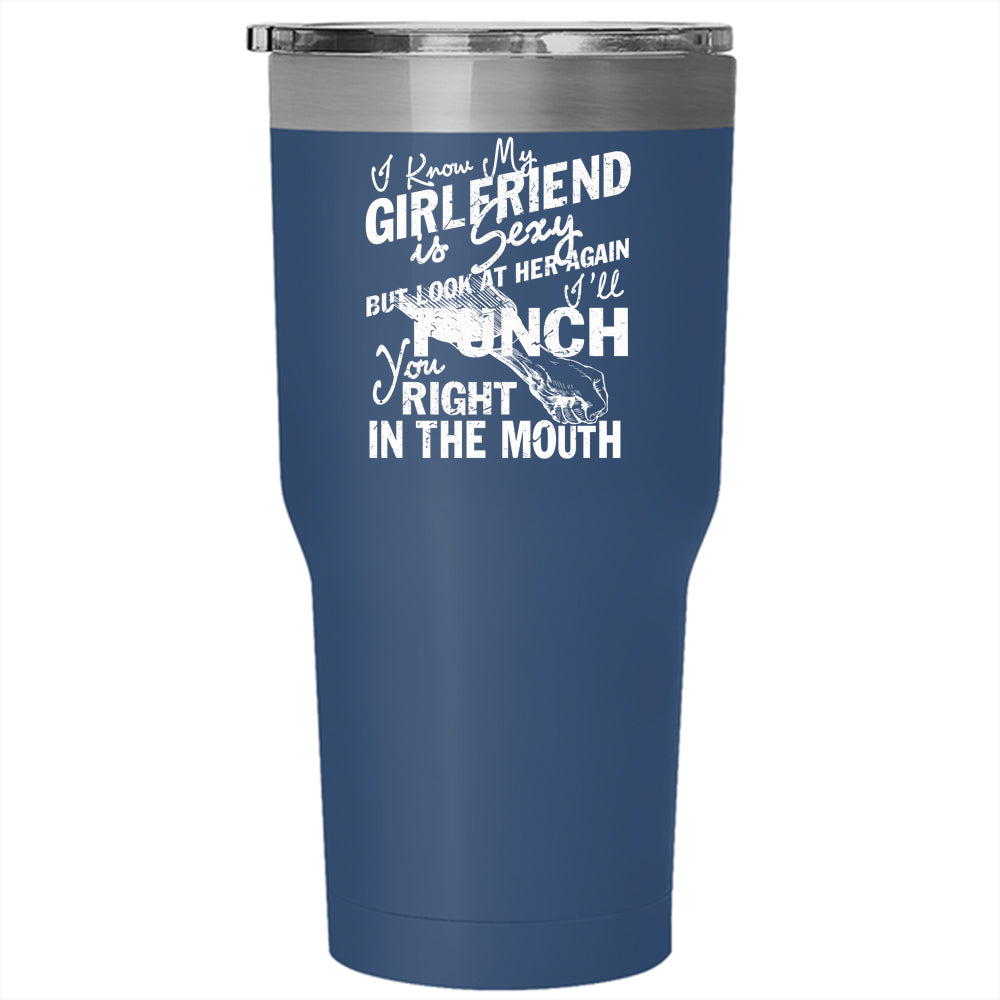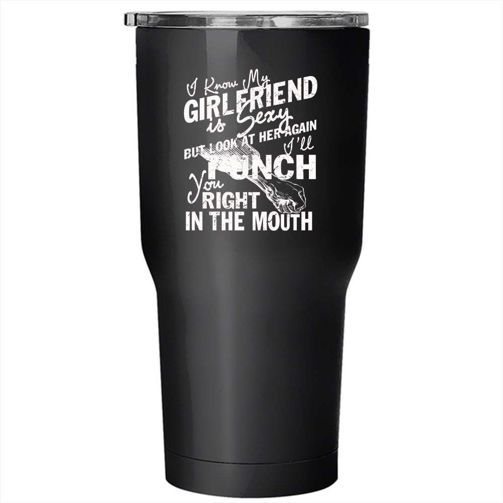 I Know My Girlfriend Is Cute Tumbler 30 oz Stainless Steel, Don't Look At Her Travel Mug