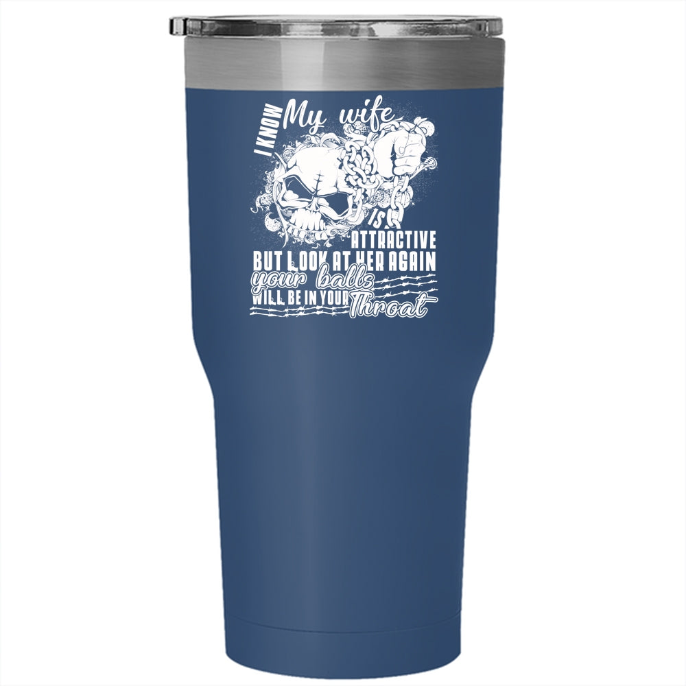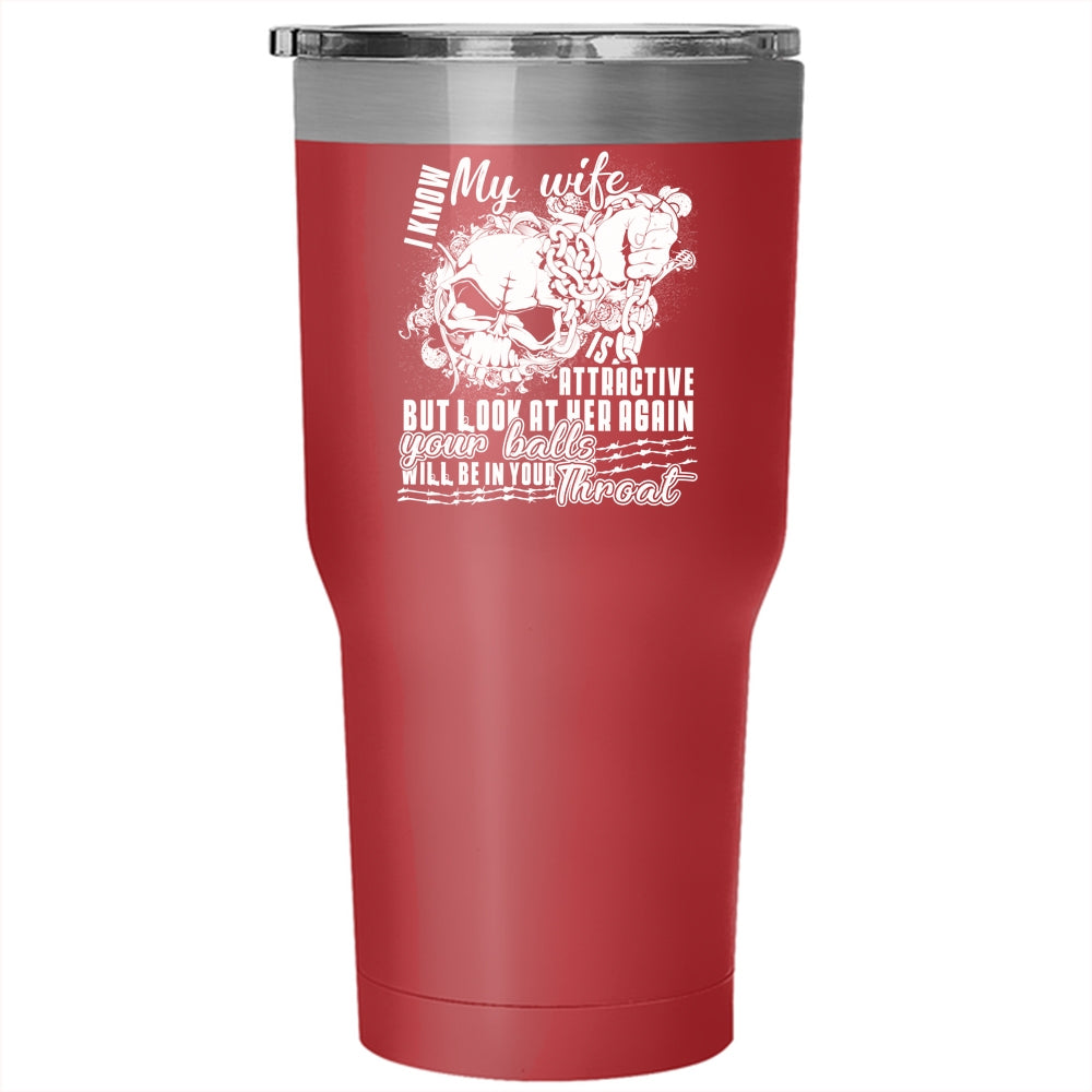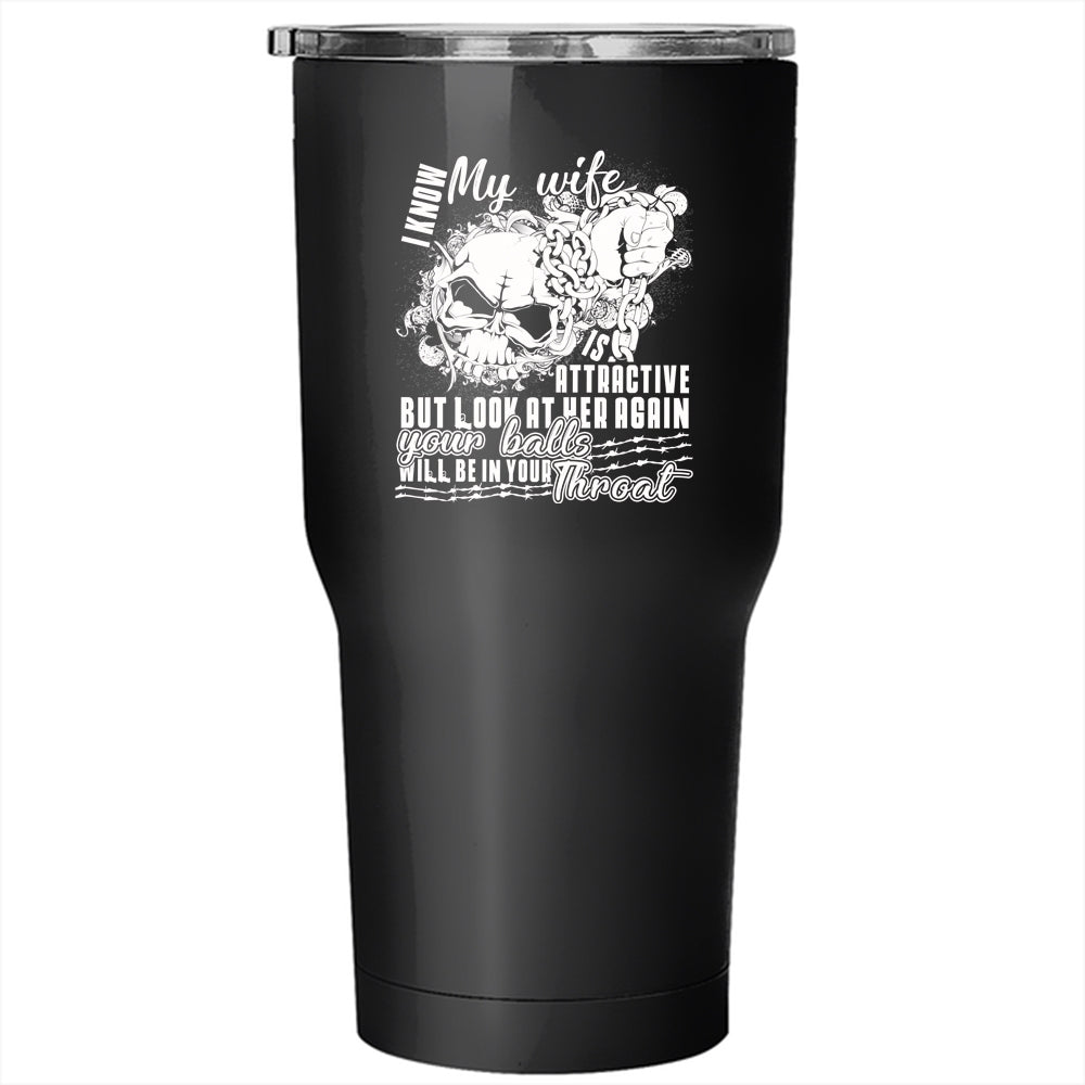 I Know My Wife Is Attaractive Tumbler 30 oz Stainless Steel, Cool Wife Travel Mug